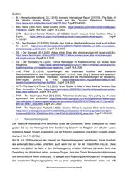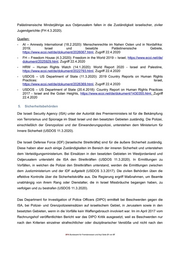 Quellen: - AI – Amnesty International (22.2.2018): Amnesty International Report 2017/18 - The State of the World's Human Rights - Israel and the Occupied Palestinian Territories, https://www.ecoi.net/de/dokument/1444230.html, Zugriff 22.4.2020 - BBC News (26.4.2020): Israel country profile, https://www.bbc.com/news/world-middle-east- 14628835, Zugriff 14.5.2020, Zugriff 14.5.2020 - CFR – Council on Foreign Relations (21.4.2020): Israel’s Unusual Crisis Coalition: What to Expect, https://www.cfr.org/in-brief/israels-unusual-crisis-coalition-what-expect, Zugriff 14.5.2020 - DS – Der Standard (21.5.2020): Debatte über Kritik an Westbank-Annexion sorgt auch in Wien für Zwist, https://www.derstandard.at/story/2000117622417/debatte-um-kritik-an-westbank- annexion-sorgt-auch-in-wien, Zugriff 22.5.2020 - DS – Der Standard (20.5.2020): Abbas erklärt Ende aller Vereinbarungen mit Israel und USA, https://www.derstandard.at/story/2000117596111/abbas-erklaert-ende-aller-vereinbarungen- mit-israel-und-usa, Zugriff 20.5.2020 - DS – Der Standard (13.5.2020): Trumps Nahostplan im Koalitionsvertrag von Israels neuer Regierung, https://www.derstandard.at/story/2000117460015/trumps-nahost-plan-im- koalitionsvertrag-von-israels-neuer-regierung, Zugriff 14.5.2020 - Lintl, Peter (2.3.2018): Auswirkungen des ungelösten Konflikts auf israelische Machtkonstellationen und Akteursperspektiven. In: Lintl, Peter (Hrg.): Akteure des israelisch- palästinensischen Konflikts - Interessen, Narrative und die Wechselwirkungen der Besatzung, SWP-Studie 2018/S, S. 9-30, https://www.swp-berlin.org/publikation/akteure-des- israelischpalaestinensischen-konflikts/, Zugriff 22.4.2020 - NYT – The New York Times (12.5.2020): Israeli Soldier Is Killed in West Bank as Tensions Rise Over Annexation Push, https://www.nytimes.com/2020/05/12/world/middleeast/israel-soldier- killed-west-bank.html, Zugriff 14.5.2020 - TWP – The Washington Post (20.5.2020): Palestinian leader says he’s pulling out of peace agreements over annexation, https://www.washingtonpost.com/world/palestinian-leader-says- hes-pulling-out-of-peace-agreements-over-annexation/2020/05/19/fb7558a2-9a17-11ea-ad79- eef7cd734641_story.html, Zugriff 20.5.2020 - TWP – The Washington Post (13.5.2020): Clashes kill two in separate West Bank incidents, https://www.washingtonpost.com/world/middle_east/clashes-kill-two-in-separate-west-bank- incidents/2020/05/13/9e2b0fcc-94fc-11ea-87a3-22d324235636_story.html, Zugriff 14.5.2020 2.4. Nationalstaatsgesetz Das deutsche Auswärtige Amt beschreibt Israel als Demokratie, deren Innenpolitik zu einem großen Teil von der Heterogenität ihrer Bevölkerung bestimmt ist. Religiöse und säkulare Juden, israelische Araber, Drusen, Zuwanderer aus der früheren Sowjetunion und andere Gruppen prägen das Land (AA 5.11.2019b). Am 19. Juli 2018 wurde von der Knesset das Nationalstaatsgesetz beschlossen. Es ist innerhalb wie außerhalb des Landes umstritten, auch wenn nur ein Teil der Vorschriften neu ist. Diese werden nun jedoch de facto in den Verfassungsrang erhoben. Während die einen darin eine Darstellung der Wirklichkeit sehen, monieren Gegner, dass das Gesetz Minderheiten diskriminiere und demokratische Werte untergrabe. Es spiegelt auch Regierungsbemühungen zur Umgestaltung des israelischen Regierungssystems, hin zu einer „majoritären Demokratie“ wider, und trifft .BFA Bundesamt für Fremdenwesen und Asyl Seite 14 von 57