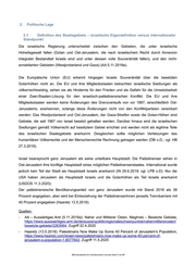 2. Politische Lage 2.1. Definition des Staatsgebiets – israelische Eigendefinition versus internationaler Standpunkt Die israelische Regierung unterscheidet zwischen den Gebieten, die unter israelische Hoheitsgewalt fallen (Golan und Ost-Jerusalem, die nach israelischem Recht durch Annexion integraler Bestandteil Israels sind und unter dessen volle Souveränität fallen), und den nicht- annektierten Gebieten (Westjordanland und Gaza) (AA 5.11.2019a). Die Europäische Union (EU) erkennt hingegen Israels Souveränität über die besetzten Golanhöhen nicht an. Die EU und ihre Mitgliedsstaaten betrachten israelische Siedlungen als völkerrechtswidrig, sehen sie als Hindernis für den Frieden und als Gefahr für die Umsetzbarkeit einer Zwei-Staaten-Lösung für den israelisch-palästinensischen Konflikt. Die EU und ihre Mitgliedsstaaten werden keine Änderungen des Grenzverlaufs von vor 1967, einschließlich Ost- Jerusalems, anerkennen, solange diese Änderungen nicht von den Konfliktparteien vereinbart werden. Das Westjordanland und Ost-Jerusalem, der Gaza-Streifen sowie die Golan-Höhen sind Gebiete, die seit 1967 von Israel besetzt gehalten werden. Darüber hinaus sind die israelischen Siedlungen gemäß Völkerrecht auf besetztem Gebiet errichtet und werden nicht als legitime Teile des israelischen Staatsgebiets anerkannt. Desgleichen sollte möglichen Verletzungen des humanitären Völkerrechts und der Menschenrechte Rechnung getragen werden (ÖB o.D.; vgl. HB 27.3.2019). Israel beansprucht ganz Jerusalem als seine unteilbare Hauptstadt. Die Palästinenser sehen in Ost-Jerusalem ihre künftige Hauptstadt eines möglichen Palästinenserstaates. International wurde jedoch kein Teil der Stadt als Hauptstadt Israels anerkannt (IN 28.6.2019; vgl. LPB o.D). Nur die USA haben Jerusalem als Hauptstadt Israels und die Golanhöhen als Teil Israels anerkannt (USDOS 11.3.2020). Der palästinensische Bevölkerungsanteil von ganz Jerusalem wurde mit Stand 2018 als 38 Prozent angegeben, aber wird bei Einbeziehung der PalästinenserInnen jenseits Trennbarriere mit 40 Prozent angegeben (Haaretz 13.5.2018). Quellen: - AA – Auswärtiges Amt (5.11.2019a): Naher und Mittlerer Osten, Maghreb – Besetzte Gebiete, https://www.auswaertiges-amt.de/de/aussenpolitik/regionaleschwerpunkte/nahermittlererosten/ besetzte-gebiete/2263564, Zugriff 22.4.2020 - Haaretz (13.5.2018): Palestinians Now Make Up Some 40 Percent of Jerusalem's Population, https://www.haaretz.com/israel-news/palestinians-now-make-up-some-40-percent-of- jerusalem-s-population-1.6077642, Zugriff 11.5.2020 .BFA Bundesamt für Fremdenwesen und Asyl Seite 7von 57