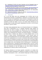 eines Koalitionsvertrages zwischen mehreren Parteien gebildet worden, da bisher keine der Parteien mehr als die Hälfte der Knessetsitze auf sich vereinigen konnte. Die Amtszeit der Regierung beträgt vier Jahre, sie kann jedoch durch Rücktritt oder Tod des Ministerpräsidenten oder durch ein Misstrauensvotum in der Knesset früher beendet werden (IBÖ o.D.). Der Oberste Gerichtshof hat nicht die Autorität eines Verfassungsgerichts, denn Israel besitzt keine Verfassung, sondern nur Grundgesetze mit verfassungsmäßigem Rang. Als höchste juristische Instanz muss der Gerichtshof deshalb die Handlungsspielräume der Regierung immer wieder neu abstecken – und dabei seine Unabhängigkeit beweisen (DZ 3.5.2020). Dem Regierungschef Netanjahu war es nach den beiden Parlamentswahlen im April und September 2019 nicht gelungen, eine neue Regierungsmehrheit zu bilden. Netanjahus wichtigster Rivale Benny Gantz von der Mitte-rechts-Liste Blau-Weiß hatte nach der Wahl im September 2019 die Bildung einer Einheitsregierung wegen der Korruptionsvorwürfe gegen Netanjahu abgelehnt. Nach dem Scheitern von Koalitionsverhandlungen stimmte die Knesset Anfang Dezember 2019 für ihre Auflösung und eine Neuwahl am 2. März 2020. Netanjahu ist der erste amtierende Regierungschef in der Geschichte Israels, der unter Anklage steht. Ihm werden Betrug, Bestechlichkeit und Untreue vorgeworfen. Gemäß israelischem Recht muss der Ministerpräsident nur im Falle einer rechtskräftigen Verurteilung zurücktreten (DZ 18.2.2020; vgl. DP 12.12.2019; DS 9.12.2019). Aus der dritten Parlamentswahl in Israel innerhalb eines Jahres geht der „Likud" von Ministerpräsident Benjamin Netanjahu als stärkste Fraktion hervor: Nach Auszählung von 99 Prozent der Stimmen kommt der „Likud" künftig auf 36 Sitze (September 2019: 32 Sitze). Die Partei „Kachol Lavan" von Herausforderer Benny Gantz erhält voraussichtlich 33 Sitze in der Knesset (September 2019: 33 Sitze). An dritter Stelle folgt mit 15 Sitzen erneut die „Vereinte Liste", einem Bündnis aus den vier hauptsächlich arabischen Parteien „Ta'al", „Chadasch", „Balad" und „Ra'am" (September 2019: 13 Sitze). Fünf weitere Parteien ziehen in das israelische Parlament ein: Im konservativen und religiösen Lager die Partei „Schas" (9 Sitze) sowie die Bündnisse „Vereinigtes Thora-Judentum" (7 Sitze) und „Jamina" (6 Sitze); im progressiven Spektrum das Bündnis „Awoda-Gescher-Meretz" (7 Sitze). Die nationalistische Partei „Jisra’el Beitenu" erhält 7 Sitze. Die Wahlbeteiligung lag bei 71 Prozent und damit etwas höher als bei den vergangenen zwei Parlamentswahlen im April und September 2019 (BPB 4.3.2020). Nach mehreren vergeblichen Versuchen bekam Israel Ende April 2020 eine neue Regierung. Eine „nationale Notstandsregierung" soll künftig Israel regieren. Darauf haben sich der amtierende Ministerpräsident Benjamin Netanjahu und sein wichtigster politischer Rivale, der .BFA Bundesamt für Fremdenwesen und Asyl Seite 9von 57