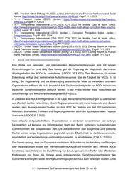 .BFA Bundesamt für Fremdenwesen und Asyl Seite 14 von 40 8. Korruption Der Corruption Perception Index von Transparency International liegt im Fall von Jordanien bei 47/100 (0 für sehr korrupt, 100 für nicht korrupt). Jordanien belegt damit im Ranking den 61. von 180 Plätzen (TI 2023; vgl. TI 31.1.2023). Demnach hat Jordanien im Vergleich zu den Vorjahren zwei Punkte verloren. Das Misstrauen der Bevölkerung gegenüber der Regierung ist somit aufgrund vermehrter Einschränkungen gestiegen. Grund dafür ist vor allem die Verhängung des Ausnahmezustands während der COVID-19-Pandemie und das damit verbundene Vorgehen gegen Zivilgesellschaft und Journalisten, die Kritik an der Regierung äußerten (TI 31.1.2023). Dabei wurden in vergangenen Jahren Sicherheitsmaßnahmen missbraucht, um die Versammlungs- und Redefreiheit einzuschränken. Hinzu kommt, dass die schwache Gewaltenteilung zwischen Exekutive und Parlament, die Korruption und die seit Jahren versprochenen demokratischen Reformen verzögern (TI 25.1.2022). Aktivisten und Journalisten fanden es zudem schwierig, Zugang zu staatlichen Berichten und Statistiken zu erhalten. Sie führten das auf einen mangelnden Zugang, ineffiziente Aktenführung und auf die Vorenthaltung von Informationen durch die Regierung zurück (USDOS 20.3.2023). Die Regierung hat Bemühungen unternommen, um die weitverbreitete Korruption zu bekämpfen. Die Integrity and Anticorruption Commission (JIACC) ist als Antikorruptionsbehörde zuständig für die Untersuchung von Korruptionsvorwürfen. Erfolgreiche strafrechtliche Verfolgungen gibt es allerdings selten, vor allem wenn es sich um hochrangige Beamte handelt (FH 2023). Behörden zeigten jedoch in den letzten Jahren eine zunehmende Bereitschaft, Ermittlungen wegen Korruption im öffentlichen Dienst einzuleiten. Im Laufe des Jahres 2022 wurden zahlreiche lokale Beamte sowie der ehemalige Präsident der jordanischen Phosphat- und Bergbaugesellschaft, Walid al-Kurdi, verurteilt. Im September 2022 bestätigte das jordanische Berufungsgericht erstinstanzliche Verurteilungen lokaler Beamter, die in einen Korruptionsfall im Zusammenhang mit illegaler Tabakproduktion und Schmuggel verwickelt waren (USDOS 20.3.2023). Die Nutzung von familiären, geschäftlichen und anderen persönlichen Verbindungen zur Förderung persönlicher wirtschaftlicher Interessen ist weit verbreitet (USDOS 20.3.2023). Dieses Phänomen ist in Jordanien auch als „Wasta-Netzwerk“ bekannt. Diese Art der Vetternwirtschaft führt z.B. dazu, dass Unternehmen und Sektoren nur Personen aus der gleichen Gemeinschaft einstellen. Die Regierung war bislang nicht in der Lage, das Erbe der mit der Elite verbundenen Privilegien und Wasta-Netzwerke zu überwinden und gleichzeitig Sparmaßnahmen zu ergreifen. Da die Korruption in Jordanien immer stärker wahrgenommen wird, fühlen sich große Teile der jordanischen Gesellschaft von der herrschenden Klasse und der von ihr gesteuerten Wirtschaftspolitik entfremdet (FES 10.2020). Quellen: