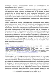 .BFA Bundesamt für Fremdenwesen und Asyl Seite 20 von 40 Zwischen März und April 2022 wurden hunderte Journalisten, Politiker und Aktivisten teilweise aufgrund der bestehenden Gesetzgebung zur Cyberkriminalität verhaftet (FH 2023) (Anm.: für mehr Informationen siehe Kapitel „Versammlungs- und Vereinigungsfreiheit, Opposition“). Quellen: - FH – Freedom House (2023): Freedom in the World 2023 - Jordan, https://www.ecoi.net/de/dokument/2094369.html, Zugriff 25.1.2024 - HRW – Human Rights Watch (11.1.2024): World Report 2024 - Jordan, https://www.ecoi.net/de/dokument/2103171.html, Zugriff 25.1.2024 - USDOS – United States Department of State [USA] (20.3.2023): 2022 Country Report on Human Rights Practices: Jordan, https://www.ecoi.net/de/dokument/2089239.html, Zugriff 25.1.2024 13. Versammlungs- und Vereinigungsfreiheit, Opposition Die Verfassung gewährt Versammlungsfreiheit (USDOS 20.3.2023), aber die Regierung beschränkt dieses Recht in der Praxis (USDOS 20.3.2023; vgl. FH 2023). Öffentliche Versammlungen und Demonstrationen müssen seit einem im März 2011 geänderten Gesetz nicht mehr von der Regierung genehmigt werden. Es ist aber weiterhin eine Genehmigung des Innenministeriums oder des General Intelligence Directorate (GID) einzuholen (HRW 11.1.2024). Das Innenministerium hat geplante öffentliche Veranstaltungen ohne Vorankündigung oder Erklärung abgesagt. Verstöße gegen das Versammlungsgesetz können mit Geld- und Haftstrafen geahndet werden. Die Sicherheitskräfte sind dafür bekannt, dass sie gewaltsam gegen Demonstranten vorgehen (FH 2023). Im März und April 2022 wurden hunderte Journalisten, Politiker und Aktivisten, die an Demonstrationen beteiligt waren, aufgrund vager Bestimmungen im Strafgesetzbuch und im Gesetz zur Verhinderung von Cyberkriminalität verhaftet. Mit diesen Verhaftungen wollte die Regierung regierungsfeindliche Demonstrationen und Sitzstreiks verhindern, mit denen gegen die Regierungskorruption, die Auflösung der Lehrergewerkschaft und das Gedenken an die Protestbewegung von 2011 protestiert werden sollte. Im Dezember kam es auch zu Protesten gegen gestiegene Kraftstoff- und Lebenshaltungskosten. Dabei kam es zu Ausschreitungen und anderen gewalttätigen Aktionen, bei denen ein Polizeibeamter getötet wurde (FH 2023). Die Verfassung sieht das Recht auf Vereinigungsfreiheit vor, aber in der Praxis wurde diese Freiheit durch die Regierung beschränkt. Laut Gesetz steht mehreren Ministerien das Recht zu, Anträge für die Registrierung einer Organisation oder für den Erhalt ausländischer Finanzierung aus beliebigen Gründen abzulehnen. Außerdem verbietet das Gesetz, Vereinigungen zur Stärkung politischer Organisationen zu nutzen. Das Gesetz gewährt den Ministerien außerdem signifikante Kontrolle über das interne Management von Vereinigungen, darunter das Recht, letztere aufzulösen, neue Vorstände zu ernennen und Regierungsvertreter zu den Vorstandstreffen zu senden. Vereinigungen sind verpflichtet, das Ministerium für soziale Entwicklung über Vorstandssitzungen zu informieren, die Namen aller Mitglieder preiszugeben und alle Vorstandsentscheidungen dem Ministerium zur