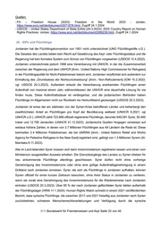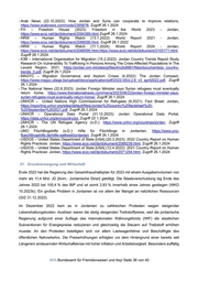 .BFA Bundesamt für Fremdenwesen und Asyl Seite 36 von 40 - Arab News (22.10.2023): How Jordan and Syria can cooperate to improve relations, https://www.arabnews.com/node/2395876, Zugriff 26.1.2024 - FH – Freedom House (2023): Freedom in the World 2023 - Jordan, https://www.ecoi.net/de/dokument/2094369.html,Zugriff 26.1.2024 - HRW – Human Rights Watch (13.1.2022): World Report 2021 - Jordan, https://www.ecoi.net/de/dokument/2068595.html, Zugriff 26.1.2022 - HRW – Human Rights Watch (11.1.2024): World Report 2024 - Jordan, https://www.ecoi.net/de/dokument/2068595.html,https://www.ecoi.net/de/dokument/2103171.html, Zugriff 26.1.2024 - IOM – International Organisation for Migration (15.2.2022): Jordan Country Trends Report Study Research On Vulnerability To Trafficking In Persons Among The Crisis-Affected Populations In The Levant Region, 2021, https://jordan.iom.int/sites/g/files/tmzbdl991/files/documents/jo_country- trends_0.pdf, Zugriff 26.1.2024 - MAGYC – Migration Governance and Asylum Crises (4.2022): The Jordan Compact, https://www.magyc.uliege.be/upload/docs/application/pdf/2022-05/d.2.6_v3_april2022.pdf, Zugriff 26.1.2024 - The National News (22.8.2023): Jordan Foreign Minister says Syrian refugees must eventually return home, https://www.thenationalnews.com/mena/2023/08/22/jordan-foreign-minister-says- syrian-refugees-must-eventually-return-home/, Zugriff 26.1.2024 - UNHCR – United Nations High Commissioner for Refugees (9.2021): Fact Sheet: Jordan, https://reporting.unhcr.org/sites/default/files/Jordan%20country%20factsheet%20- %20September%202021.pdf, Zugriff 26.1.2024 - UNHCR – Operational Data Portal (31.12.2023): Jordan Operational Data Portal, https://data.unhcr.org/en/country/jor, Zugriff 22.1.2024 - UNHCR – The UN Refugee Agency (o.D.): https://www.unhcr.org/countries/jordan, Zugriff 26.1.2024 - UNO Flüchtlingshilfe (o.D.): Hilfe für Flüchtlinge in Jordanien, https://www.uno- fluechtlingshilfe.de/hilfe-weltweit/jordanien, Zugriff 26.1.2024 - USDOS – United States Department of State [USA] (20.3.2023): 2022 Country Report on Human Rights Practices: Jordan, https://www.ecoi.net/de/dokument/2089239.html, Zugriff 26.1.2024 - USDOS – United States Department of State [USA] (12.4.2022): 2021 Country Report on Human Rights Practices: Jordan, https://www.ecoi.net/de/dokument/2071204.html, Zugriff 26.1.2024 21. Grundversorgung und Wirtschaft Ende 2022 hat die Regierung den Gesamthaushaltsplan für 2023 mit einem Ausgabenvolumen von mehr als 11,4 Mrd. JD [Anm.: Jordanische Dinar] gebilligt. Die Staatsverschuldung lag Ende des Jahres 2022 bei 105,4 % des BIP und ist somit 2,83 % innerhalb eines Jahres gestiegen (WKO 10.2023b). Ein großes Problem in Jordanien ist vor allem der Mangel an natürlichen Ressourcen (GIZ 31.12.2022). Im Dezember 2022 kam es in Jordanien zu zahlreichen Protesten wegen steigender Lebenshaltungskosten. Auslöser waren die stetig steigenden Treibstoffpreise, weil die jordanische Regierung aufgrund einer Auflage des Internationalen Währungsfonds (IWF) die staatlichen Subventionen für Energiepreise reduzieren und gleichzeitig die Steuern auf Treibstoff erhöhen musste. An den Protesten beteiligten sich vor allem Lastwagenfahrer und Beschäftigte des öffentlichen Nahverkehrs. Die Preiserhöhungen erfolgten vor dem Hintergrund einer bereits seit Längerem andauernden Wirtschaftskrise mit hoher Inflation und Arbeitslosigkeit. Besonders auffällig
