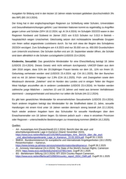 Ausgaben für Bildung sind in den letzten 10 Jahren relativ konstant geblieben (durchschnittlich 3% des BIP) (BS 19.3.2024). Der Krieg hat in den englischsprachigen Regionen zur Schließung vieler Schulen, Universitäten und Gesundheitseinrichtungen geführt. Laut Vereinten Nationen kommt es regelmäßig zu Angriffen gegen Lehrer und Schüler (SFH 18.12.2024; vgl. AI 24.4.2024). Im Schuljahr 2022/23 waren in den Regionen Nordwest und Südwest im Jänner 2023 von 6.515 Schulen nur 3.013 in Betrieb – hauptsächlich wegen Unsicherheit. Gleichzeitig setzen dort nichtstaatliche bewaffnete Gruppen von ihnen selbst angeordnete Lockdowns durch. So hat sich etwa der Beginn des Schuljahres 2023/24 verzögert. Zum Schulbeginn am 4.9.2023 sind nur 35.000 von ca. 450.000 Grundschülern zum Unterricht erschienen. Die Schulen durften erst am 19. September wieder öffnen, die Schüler sind dann allmählich in die Schulen zurückgekehrt (USDOS 23.4.2024). Kinderehe, Sexualität: Das gesetzliche Mindestalter für eine Eheschließung beträgt 18 Jahre (USDOS 23.4.2024). Dieses Gesetz wird nicht wirksam durchgesetzt. UNICEF-Daten aus dem Jahr 2018 zeigen, dass 31% der 20-24jährigen Frauen bereits vor dem 18., 11% vor ihrem 15. Geburtstag verheiratet worden sind (USDOS 23.4.2024; vgl. CIA 16.1.2025). Bei den Burschen sind es mit 18 Jahren hingegen nur 2,9% (CIA 16.1.2025). Früh- und Zwangsehen sowie dem Missbrauch dienende „Zeitehen“ sind im Norden des Landes und in einigen Teilen der Region West häufiger anzutreffen als in anderen Landesteilen (USDOS 23.4.2024). Im Norden werden zahlreiche junge Mädchen – zwischen 10 und 15 Jahren und meist aus ärmeren Verhältnissen stammend – zwangsverheiratet und besuchen nur selten die Schule (AA 22.2.2024). Es gibt kein gesetzliches Mindestalter für einvernehmlichen Sexualverkehr (USDOS 23.4.2024). Nach anderen Angaben beträgt das Mindestalter für die Straffreiheit dabei 21 Jahre, sexuelle Handlungen mit einem Kind unter 16 Jahren werden demnach streng bestraft (AA 22.2.2024). Nach wieder anderen Angaben kann das Schutzalter für sexuelle Handlungen über dem Erwachsenenalter von 18 Jahren liegen. Es können jedoch auch – etwa in einzelnen Provinzen oder Regionen – unterschiedliche Bestimmungen zur Anwendung kommen (BMEIA 18.2.2025). Quellen: - AA - Auswärtiges Amt [Deutschland] (22.2.2024): Bericht über die asyl- und abschiebungsrelevante Lage in Kamerun (Stand: November 2023), https://www.ecoi.net/en/file/local/2105298/Auswärtiges_Amt,_Bericht_über_die_asyl- _und_abschiebungsrelevante_Lage_in_Kamerun,_22.02.2024.pdf, Zugriff 20.1.2025 - BMEIA - Bundesministerium für europäische und internationale Angelegenheiten (18.2.2025): Reiseinformation – Kamerun, https://www.bmeia.gv.at/reise-services/reiseinformation/land/kamerun, Zugriff 28.2.2025 - AI - Amnesty International (24.4.2024): The State of the World's Human Rights; Cameroon 2023, https://www.ecoi.net/de/dokument/2107853.html, Zugriff 20.1.2025 - BS - Bertelsmann Stiftung (19.3.2024): BTI 2024 Country Report Cameroon, https://www.ecoi.net/en/file/local/2105824/country_report_2024_CMR.pdf, Zugriff 20.1.2025 .BFA Bundesamt für Fremdenwesen und Asyl Seite 37 von 51