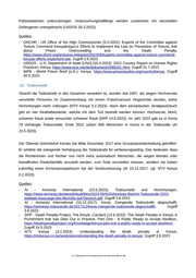 Polizeistationen unterzubringen. Untersuchungshäftlinge werden zusammen mit verurteilten Gefangenen untergebracht (USDOS 20.3.2023). Quellen: - OHCHR - UN Office of the High Commissioner (5.5.2022): Experts of the Committee against Torture Commend Kenya’s Efforts to Implement the Law on Prevention of Torture, Ask about Prison Overcrowding and the Death Penalty, https://www.ohchr.org/en/press-releases/2022/05/experts-committee-against-torture-commend- kenyas-efforts-implement-law, Zugriff 3.8.2023 - USDOS - U.S. Department of State [USA] (20.3.2023): 2022 Country Report on Human Rights Practices: Kenya, https://www.ecoi.net/de/dokument/2089241.html, Zugriff 31.7.2023 - WPB - World Prison Brief (o.D.): Kenya, https://www.prisonstudies.org/country/kenya, Zugriff 30.5.2023 12. Todesstrafe Obwohl die Todesstrafe in den Gesetzen verankert ist, wurden seit 1987, als wegen Hochverrats verurteilte Personen im Zusammenhang mit einem Putschversuch hingerichtet wurden, keine Hinrichtungen mehr vollzogen (NTV Kenya 3.2.2023). Nach dem kenianischen Strafgesetzbuch gibt es vier Straftatbestände, welche mit dem Tod bestraft werden können: Hochverrat, Mord, schwerer Raub sowie versuchter schwerer Raub (DPP 14.6.2022). Im Jahr 2022 gab es in Kenia 79 verhängte Todesurteile. Ende 2022 saßen 656 Menschen in Kenia in der Todeszelle (AI 23.5.2023). Der Oberste Gerichtshof Kenias hat Mitte Dezember 2017 eine Grundsatzentscheidung getroffen: Er erklärte die zwingende Verhängung der Todesstrafe für verfassungswidrig. Das bedeutet, dass die Richterinnen und Richter nun nicht mehr automatisch Menschen, die wegen Mordes oder bewaffneten Raubüberfalls verurteilt werden, zum Tode verurteilen müssen, sondern sie haben zukünftig einen Ermessensspielraum bei der Strafzumessung (AI 15.12.2017; vgl. NTV Kenya 3.2.2023). Quellen: - AI - Amnesty International (23.5.2023): Todesurteile und Hinrichtungen, https://www.amnesty.de/sites/default/files/2023-05/%20Amnesty-Bericht-Todesstrafe-2022- weltweit-Auszuege-des-Berichts-auf-Deutsch.pdf, Zugriff 3.8.2023 - AI - Amnesty International (15.12.2017): Kenia: Zwingende Todesstrafe abgeschafft, https://amnesty-todesstrafe.de/2017/12/kenia-zwingende-todesstrafe-abgeschafft/, Zugriff 3.8.2023 - DPP - Death Penalty Project, The [Hoyle, Carolyn] (14.6.2022): The Death Penalty in Kenya: A Punishment that has Died Out in Practice, Part One - A Public Ready to Accept Abolition, https://deathpenaltyproject.org/knowledge/kenya-part-one-a-public-ready-to-accept-abolition/, Zugriff 24.5.2023 - NTV Kenya (3.2.2023): Understanding the death penalty in Kenya, https://ntvkenya.co.ke/analysis/understanding-the-death-penalty-in-kenya/, Zugriff 3.8.2023 .BFA Bundesamt für Fremdenwesen und Asyl Seite 18 von 35