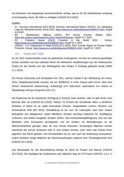 15. Relevante Bevölkerungsgruppen 15.1. Frauen Die Verfassung sieht die Gleichberechtigung von Männern und Frauen vor. Dennoch wendet die Justiz in weiten Teilen Gewohnheitsrecht an, das Frauen diskriminiert und ihre politischen und wirtschaftlichen Rechte einschränkt (USDOS 20.3.2023). Frauen sind in allen Bereichen des öffentlichen und zivilen Lebens immer noch unverhältnismäßig stark benachteiligt. In ländlichen Gebieten haben Frauen nur eingeschränkten Zugang zur Justiz, und diskriminierende traditionelle Praktiken sind nach wie vor gang und gäbe. Kenia hat den Internationalen Pakt über bürgerliche und politische Rechte und mehrere andere internationale und regionale Übereinkommen unterzeichnet, die die Menschen- und Bürgerrechte seiner Bürger schützen sollen (BS 2022). Die Verfassung verbietet die Diskriminierung aufgrund des Geschlechts in Bezug auf Grundbesitz und Eigentum und räumt Frauen gleiche Rechte in Bezug auf das Erbe und den Zugang zu Land ein. Die Verfassung sieht auch den Erlass von Gesetzen zum Schutz der Rechte von Ehefrauen auf eheliches Eigentum während und nach Beendigung einer Ehe vor und bestätigt, dass die Parteien einer Ehe zum Zeitpunkt der Eheschließung, während der Ehe und bei deren Auflösung Anspruch auf gleiche Rechte haben. Im September 2021 entschied ein Richter, der in einer güterrechtlichen Auseinandersetzung den Vorsitz führte, dass die Tätigkeit als Hausfrau als Vollzeitbeschäftigung angesehen werden sollte. Der Richter befand, es sei ungerecht, wenn Gerichte entschieden, dass Hausfrauen nicht zum finanziellen Wohlstand des Haushalts beitrügen (USDOS 20.3.2023). Nach Angaben von Gruppen der Zivilgesellschaft sehen sich Frauen jedoch weiterhin mit institutionellen und rechtlichen Hindernissen konfrontiert, die ihren Zugang zur Justiz und zu einem gerechten Anteil am ehelichen Vermögen bei der Auflösung der Ehe behindern. Darüber hinaus waren die gesetzlichen Bestimmungen für die Beantragung von Erbschaften nicht ausreichend bekannt, so dass viele Erbschaften weiterhin nur von den Vätern auf die Söhne übergehen (USDOS 20.3.2023; vgl. BS 2022). Obwohl dies nach kenianischem Recht illegal ist, werden Witwen immer noch enterbt, unter anderem durch Vertreibung aus dem Haus und vom Land der Familie (BS 2022). Die Regierung setzt bestehende Gesetze nicht immer wirksam durch. NGOs berichten, dass Frauen in traditionellen, ländlichen und armen Gebieten häufig auf Hindernisse beim Zugang zu gleichen Rechten stoßen. Aktivisten berichten, dass Frauen, die bestimmten Gruppen angehören, darunter Menschen mit Behinderungen, LGBTQI+-Personen und Muslime, aufgrund von männlich dominierten sozialen Normen diskriminiert werden (USDOS 20.3.2023). .BFA Bundesamt für Fremdenwesen und Asyl Seite 22 von 35