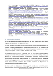 •AA – Auswärtiges Amt [Deutschland] (1.10.2024): Kirgisistan – Reise- und Sicherheitshinweise, https://www.auswaertiges-amt.de/de/service/laender/kirgisistan- node/kirgisistansicherheit/206738, Zugriff 17.12.2024 •BAMF - Bundesamt für Migration und Flüchtlinge [Deutschland] (27.5.2024): Briefing Notes, Gruppe 62 – Informationszentrum Asyl und Migration, https://www.bamf.de/SharedDocs/Anlagen/DE/Behoerde/Informationszentrum/ BriefingNotes/2024/briefingnotes-kw22-2024.pdf?__blob=publicationFile&v=3, Zugriff 17.12.2024 •BMEIA - Bundesministerium für Europäische und Internationale Angelegenheiten [Österreich] (19.12.2024): Kirgisistan (Kirgisische Republik), https://www.bmeia.gv.at/reise- services/reiseinformation/land/kirgisistan/, Zugriff 20.1.2025 •GOV.UK – Government of the United Kingdom [Vereinigtes Königreich] (o.D.): Foreign travel advice Kyrgyzstan, https://www.gov.uk/foreign-travel-advice/kyrgyzstan/safety-and- security, Zugriff 17.12.2024 •MDP – Migration Data Portal (9.5.2024): Migration data in Central Asia, https://www.migrationdataportal.org/regional-data-overview/central-asia, Zugriff 23.1.2025 •RFE/RL - Radio Free Europe/Radio Liberty (21.5.2024): Why Mass Labor Exporter Kyrgyzstan Faces Migrant Worker Fear at Home, https://www.rferl.org/a/mass-labor- kyrgyzstan-migrant-worker-fear/32957992.html, Zugriff 23.1.2025 •EDA – Eidgenössisches Departement für auswärtige Angelegenheiten [Schweiz] (23.7.2024): Reisehinweise für Kirgisistan, https://www.eda.admin.ch/eda/de/home/laender-reise-information/kirgisistan/ reisehinweise-kirgisistan.html, Zugriff 19.11.2024 •UNICEF – United Nations Children’s Fund (o.D.): Children in Kyrgyzstan, https://www.unicef.org/kyrgyzstan/children-kyrgyzstan, Zugriff 15.11.2024 •USDOS - US State Department [USA] (12.12.2024): Country Report on Terrorism 2023 - Chapter 1 - Kyrgyz Republic, https://www.ecoi.net/en/document/2118971.html, Zugriff 23.1.2025 4. Rechtsschutz / Justizwesen Im Rule of Law Index (Rechtsstaatlichkeitsindex) 2024 des World Justice Project (WJP) rangiert Kirgisistan auf Platz 101 von 142 Ländern (WJP o.D.). Die Justiz ist verfassungsrechtlich von den anderen Gewalten getrennt, in der Praxis jedoch der Exekutive untergeordnet und wird von ihr dominiert, insbesondere vom Amt des Präsidenten. Die Justiz wird in der Öffentlichkeit zudem als eine der korruptesten Institutionen des Landes wahrgenommen (BS 19.3.2024; vgl. USDOS 23.4.2024, FH 29.2.2024). Verfassung und Gesetze sehen eine unabhängige Justiz vor, allerdings wird die Unabhängigkeit und Unparteilichkeit der Richter durch Einflussnahmen und Korruption beeinträchtigt. Verlauf und Ausgang von Gerichtsverfahren scheinen in vielen Fällen vorbestimmt. Zahlreiche Quellen, darunter NGOs, Rechtsanwälte, Regierungsvertreter und Privatpersonen, berichten, dass einige Richter Bestechungsgelder zahlen, um ihr Amt zu behalten. Viele Anwälte behaupten, dass Richter überall Bestechungsgelder annehmen. Die Behörden respektieren im Allgemeinen die Entscheidungen der Gerichte (USDOS 23.4.2024). Die Justiz besteht seit 2021 aus dem Verfassungsgericht, dem Obersten Gerichtshof und den örtlichen Gerichten. Das Verfassungsgericht übt die Kontrolle über die Verfassung aus und der .BFA Bundesamt für Fremdenwesen und Asyl Seite 10 von 43