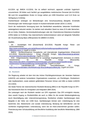 Quellen: - BMI - Bundesministerium für Inneres [Österreich] (2024): Bundesagentur für Betreuungs- und Unterstützungsleistungen (BBU GmbH) - Kongo Brazzaville - So funktioniert die Rückreise in Ihre Heimat, https://www.returnfromaustria.at/kongo_brazzaville/kongo_brazzaville_deutsch.html, Zugriff 18.92024 - USDOS - US Department of State [USA] (23.4.2024): 2023 Country Report on Human Rights Practices: Republic of the Congo, https://www.ecoi.net/en/document/2107738.html, Zugriff 11.9.2024 .BFA Bundesamt für Fremdenwesen und Asyl Seite 22 von 22