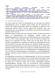 Quellen: - AI – Amnesty International (29.4.2025): Kuwait 2024, https://www.ecoi.net/de/dokument/2124737.html, Zugriff 2.5.2025 - BS – Bertelsmann Stiftung (2024): BTI 2024 Country Report Kuwait, https://www.ecoi.net/en/file/local/2105906/country_report_2024_KWT.pdf, Zugriff 16.4.2025 - EB – Encyclopedia Britannica (7.3.2025): Bohrā, https://www.britannica.com/topic/Bohras, Zugriff 22.4.2025 - FH – Freedom House (2025): Freedom in the World 2025 – Kuwait, https://freedomhouse.org/country/kuwait/freedom-world/2025, Zugriff 16.4.2025 - USDOS – United States Department of State (26.6.2024): 2023 Report on International Religious Freedom: Kuwait, https://www.ecoi.net/en/document/2111898.html, Zugriff 22.4.2025 12. Relevante Bevölkerungsgruppen Das Gesetz verbietet alle Formen der Meinungsäußerung, die Hass gegen eine bestimmte Gesellschaftsgruppe schüren, zu religiösen Unruhen aufrufen oder die Vorherrschaft einer ethnischen oder religiösen Gruppe fordern. Ebenso ist es Arbeitgebern im Ölsektor und in der Privatwirtschaft gesetzlich verboten, Personen aufgrund ihres Geschlechts, Alters, einer Schwangerschaft oder des sozialen Status zu diskriminieren, dies wurde jedoch nicht konsequent umgesetzt (USDOS 23.4.2024). Bestimmten Gruppen wird aufgrund der damit verbundenen sozialen und politischen Rechte der Zugang zur Staatsbürgerschaft und Einbürgerung verwehrt. Gemäß dem Staatsangehörigkeitsgesetz von 1959 wird die volle Staatsbürgerschaft allen Personen gewährt, die sich vor 1920 in Kuwait niedergelassen haben und bis zum Datum des Inkrafttretens des Gesetzes ihren Hauptwohnsitz dort hatten. Darüber hinaus hat jede Person, deren Vater kuwaitischer Staatsangehöriger ist, unabhängig vom Geburtsort alle Staatsbürgerrechte. Dies gilt auch für Personen in Kuwait, deren Eltern unbekannt sind. Unterdessen schließt das Gesetz die Mehrheit der Nichtstaatsangehörigen und andere historische Minderheiten aus. Zu ersteren zählen ausländische Arbeiter, die fast 3,4 Millionen der insgesamt ca. 4,6 Millionen Einwohner des Landes ausmachen. Sie haben keine Aussicht auf die Staatsbürgerschaft. Die Staatsbürgerschaft wird auch rund 80.000 bis 110.000 Bidun (abgekürzt von „Bidun jinsiyya“ = „ohne Staatsangehörigkeit“) verweigert, staatenlosen arabischen Einwohnern, die erheblicher Diskriminierung ausgesetzt sind (BS 2024). Die gesellschaftliche Diskriminierung von Nichtstaatsangehörigen, die rund 68 % der Einwohner des Landes ausmachen, ist weit verbreitet und tritt in den meisten Bereichen des täglichen Lebens auf, darunter Beschäftigung, Bildung, Wohnen, soziale Interaktion und Gesundheitsversorgung. In den Medien gibt es zahlreiche Vorwürfe, dass die Polizei Staatsangehörige gegenüber Nichtstaatsangehörigen bevorzugen würde. Das Innenministerium wendet administrative Ausweisungen, die keiner gerichtlichen Überprüfung unterliegen, an, um Nichtstaatsangehörige wegen geringfügiger Vergehen, wie dem Lenken eines Taxis ohne Lizenz, auszuweisen (USDOS 23.4.2024). .BFA Bundesamt für Fremdenwesen und Asyl Seite 17 von 36