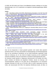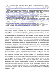 - AA – Auswärtiges Amt (11.12.2024): Kuwait: Reise- und Sicherheitshinweise Stand – 17.04.2025 (Unverändert gültig seit: 11.12.2024), https://www.auswaertiges-amt.de/de/service/laender/kuwait-node/kuwaitsicherheit-204130, Zugriff 17.4.2025 - BMEIA – Bundesministerium Europäische und Internationale Angelegenheiten (19.2.2025): Kuwait (Staat Kuwait) Stand 17.04.2025 (Unverändert gültig seit: 19.02.2025), https://www.bmeia.gv.at/reise-services/reiseinformation/land/kuwait, Zugriff 17.4.2025 - BS – Bertelsmann Stiftung (2024): BTI 2024 Country Report Kuwait, https://www.ecoi.net/en/file/local/2105906/country_report_2024_KWT.pdf, Zugriff 16.4.2025 - CRS – Congressional Research Center (28.3.2025): Kuwait: Issues for the 119th Congress, https://www.congress.gov/crs-product/R47390, Zugriff 17.4.2025 - Reuters (3.10.2024): Exclusive: Gulf states sought to reassure Iran of their neutrality in Iran- Israel conflict, sources say, https://www.reuters.com/world/middle-east/gulf-states-sought- reassure-iran-their-neutrality-iran-israel-conflict-sources-2024-10-03/, Zugriff 17.4.2025 - USDOS – United States Department of State (20.1.2025): U.S. Security Cooperation with Kuwait, https://www.state.gov/u-s-security-cooperation-with-kuwait-2/, Zugriff 17.4.2025 - USDOS – United States Department of State (12.12.2024): Country Report on Terrorism 2023 - Chapter 1 – Kuwait, https://www.ecoi.net/de/dokument/2118972.html, Zugriff 17.4.2025 4. Rechtsschutz / Justizwesen Die Verfassung sieht eine unabhängige Justiz vor, geht allerdings wenig ins Detail, wie diese Unabhängigkeit erreicht werden sollte (BS 2024). Laut dem Menschenrechtsbericht des US- amerikanischen Außenministeriums für das Jahr 2023 respektiert die Regierung im Allgemeinen die Unabhängigkeit und Unparteilichkeit der Justiz (USDOS 23.4.2024). Freedom House gibt dagegen an, dass Kuwait über kein unabhängiges Justizwesen verfügt. Der Emir hat das letzte Wort bei der Ernennung von Richtern, die von einem Obersten Justizrat vorgeschlagen werden, der sich aus hochrangigen Richtern, dem Generalstaatsanwalt und dem stellvertretenden Justizminister zusammensetzt. Die Exekutive genehmigt Beförderungen im Justizwesen. Richter, die kuwaitische Staatsbürger sind, werden auf Lebenszeit ernannt, während Nichtstaatsbürger Verträge mit einer Laufzeit von bis zu drei Jahren erhalten. In politischen Fällen entscheiden die Gerichte häufig zugunsten der Regierung (FH 2025). Die Verfassung sieht das Recht auf ein faires und öffentliches Verfahren vor, und die Justiz setzt dieses Recht laut dem erwähnten Bericht des US-Außenministeriums im Allgemeinen durch. Das Justizministerium ist verpflichtet, den Angeklagten für die gesamte Dauer des Gerichtsverfahrens einen Dolmetscher zu bezahlen und zur Verfügung zu stellen. NGOs berichteten von Fällen, bei denen Angeklagte, die kein Arabisch sprachen oder verstanden, erst nach Beginn des Verfahrens von den gegen sie erhobenen Anklagen erfahren hätten, da die Behörden bei der Anklageerhebung keinen Dolmetscher zur Verfügung gestellt hätten. Wenn ausländische Arbeitskräfte keine rechtliche Vertretung haben, organisiert die Staatsanwaltschaft diese manchmal in ihrem Namen, jedoch ohne oder mit nur geringer Beteiligung der Arbeitskräfte oder ihrer Familien. Nichtstaatsangehörige Einwohner, die in Rechtsstreitigkeiten mit Staatsangehörigen verwickelt sind, behaupten häufig, die Gerichte würden Staatsangehörige bevorzugt behandeln (USDOS 23.4.2024). .BFA Bundesamt für Fremdenwesen und Asyl Seite 9 von 36