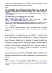konnten; in einigen Fällen handelte es sich um Personen, die wegen Verbrechen, politischer Aktivitäten oder Aktivismus gesucht wurden (USDOS 23.4.2024). Quellen: - AA - Auswärtiges Amt [Deutschland] (12.2.2024): Bericht über die asyl- und abschiebungsrelevante Lage in der Sozialistischen Republik Vietnam (Stand: November 2023), https://www.ecoi.net/en/file/local/2104342/Ausw%C3%A4rtiges_Amt%2C_Bericht_%C3%BCber_ die_asyl- _und_abschiebungsrelevante_Lage_in_der_Sozialistischen_Republik_Vietnam%2C_12.02.2024. pdf, Zugriff 8.8.2024 - FH - Freedom House (2024): Freedom in the World 2024 - Vietnam, https://www.ecoi.net/de/dokument/2108078.html , Zugriff 8.8.2024 - HRW - Human Rights Watch (11.1.2024): World Report 2024 - Vietnam, https://www.ecoi.net/de/dokument/2103153.html, Zugriff 13.8.2024 - USDOS - United States Department of State [USA] (23.4.2024): 2023 Country Report on Human Rights Practices: Vietnam, https://www.ecoi.net/de/dokument/2107615.html, Zugriff 8.8.2024 19.1. Meldewesen Es gibt ein übliches Format von Adressen in Vietnam: Hausnummer, Straße (in ländlichen Gebieten: Name des Weilers/des Dorfes), Gemeinde, Landkreis/Stadtbezirk, Provinz (AA 12.2.2024). Bis zum 1.7.2021 wurden Melderegister in Form von Registerbüchern bei den örtlichen Polizeibehörden geführt. Jeder Haushalt erhält von der Meldepolizei ein s.g. Familienbuch, in dem alle im Haushalt lebenden Personen eingetragen sind. Mit dem In-Kraft-Treten des neuen „Residence Law“ am 1.7.2021 wurde das zentrale elektronische Melderegister (Database on residence) eingeführt, verwaltet durch das Ministerium für öffentliche Sicherheit. Neue Familienbücher in Papierform werden seit diesem Zeitpunkt nicht mehr ausgestellt. Die bereits ausgestellten Familienbücher konnten weiterhin bis 31.12.2022 benutzt werden, unter der Voraussetzung, dass die Meldedaten unverändert bleiben. Seit 1.7.2021 können die Bürger bei Bedarf bei der Polizei eine Meldebestätigung beantragen, die auch Angaben zu allen im gleichen Haushalt lebenden Personen enthält (AA 12.2.2024). Mit Dekret 87/2020/NDCP vom 28.7.2020 hat die Regierung den Aufbau und Betrieb des zentralen elektronischen Personenstandsregisters geregelt. Das Register ist derzeit noch im Aufbau. Laut Auskunft des Justizministeriums soll das Register bis spätestens 31.12.2024 in Betrieb gehen (AA 12.2.2024). Quellen: - AA - Auswärtiges Amt [Deutschland] (12.2.2024): Bericht über die asyl- und abschiebungsrelevante Lage in der Sozialistischen Republik Vietnam (Stand: November 2023), https://www.ecoi.net/en/file/local/2104342/Ausw%C3%A4rtiges_Amt%2C_Bericht_%C3%BCber_ die_asyl- .BFA Bundesamt für Fremdenwesen und Asyl Seite 29 von 36