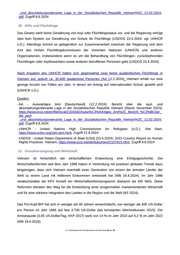 _und_abschiebungsrelevante_Lage_in_der_Sozialistischen_Republik_Vietnam%2C_12.02.2024. pdf, Zugriff 8.8.2024 20. IDPs und Flüchtlinge Das Gesetz sieht keine Gewährung von Asyl oder Flüchtlingsstatus vor, und die Regierung verfügt über kein System zur Gewährung von Schutz für Flüchtlinge (USDOS 23.4.2024; vgl. UNHCR o.D.). Allerdings kommt es gelegentlich zur Zusammenarbeit zwischen der Regierung und dem Amt des Hohen Flüchtlingskommissars der Vereinten Nationen (UNHCR) und anderen Organisationen, insbesondere wenn es um die Behandlung von Flüchtlingen, zurückkehrenden Flüchtlingen oder Asylbewerbern sowie anderen betroffenen Personen geht (USDOS 23.4.2024). Nach Angaben des UNHCR halten sich gegenwärtig zwar keine ausländischen Flüchtlinge in Vietnam auf, jedoch ca. 30.600 staatenlose Personen (AA 1 2.2.2024). Vietnam erhält nur eine geringe Anzahl von Fällen pro Jahr, in denen ein Antrag auf internationalen Schutz gestellt wird (UNHCR o.D.). Quellen: - AA - Auswärtiges Amt [Deutschland] (12.2.2024): Bericht über die asyl- und abschiebungsrelevante Lage in der Sozialistischen Republik Vietnam (Stand: November 2023), https://www.ecoi.net/en/file/local/2104342/Ausw%C3%A4rtiges_Amt%2C_Bericht_%C3%BCber_ die_asyl- _und_abschiebungsrelevante_Lage_in_der_Sozialistischen_Republik_Vietnam%2C_12.02.2024. pdf, Zugriff 8.8.2024 - UNHCR - United Nations High Commissioner for Refugees (o.D.): Viet Nam, https://www.unhcr.org/viet-nam.html, Zugriff 22.8.2024 - USDOS - United States Department of State [USA] (23.4.2024): 2023 Country Report on Human Rights Practices: Vietnam, https://www.ecoi.net/de/dokument/2107615.html, Zugriff 8.8.2024 21. Grundversorgung und Wirtschaft Vietnam ist hinsichtlich der wirtschaftlichen Entwicklung eine Erfolgsgeschichte. Die Wirtschaftsreformen seit dem Jahr 1986 haben in Verbindung mit positiven globalen Trends dazu beigetragen, dass sich Vietnam innerhalb einer Generation von einem der ärmsten Länder der Welt zu einem Land mit mittlerem Einkommen entwickelt hat (WB 19.4.2024). Im Jahr 1986 verabschiedete die KPV formell ein Wirtschaftsreformprogramm (bekannt als Đổi Mới). Diese Reformen ebneten den Weg für die Entwicklung einer einigermaßen marktorientierten Wirtschaft und für eine stärkere Integration des Landes in die Region und die Welt (BS 2024). Das Pro-Kopf-BIP hat sich in weniger als 40 Jahren versechsfacht, von weniger als 600 US-Dollar pro Person im Jahr 1986 auf fast 3.700 US-Dollar (bei konstanten Wechselkursen 2015). Die Armutsquote (3,65 US-Dollar/Tag, KKP 2017) sank von 14 % im Jahr 2010 auf 4,2 % im Jahr 2022 (WB 19.4.2024). .BFA Bundesamt für Fremdenwesen und Asyl Seite 30 von 36