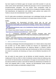 Das harte Vorgehen der Behörden gegen die Korruption wurde 2023 verschärft. Im Laufe des Jahres wurden mehrere Spitzenbeamte verhaftet oder gezwungen, ihr Amt im Zusammenhang mit Korruptionsvorwürfen aufzugeben. Trotz des jüngsten harten Durchgreifens erfolgt die Durchsetzung der Antikorruptionsgesetze oft selektiv und ist mit politischen Rivalitäten verbunden. Viele Spitzenbeamte, die festgenommen oder inhaftiert wurden, gehörten einer anderen KPV- Fraktion an als jener des Generalsekretärs Trọng (FH 2024). Die KPV duldet weder journalistische Untersuchungen noch unabhängige Gerichte oder andere autonome Einrichtungen, die als Kontrollinstanz für Korruption dienen könnten (FH 2024). Quellen: - AA - Auswärtiges Amt [Deutschland] (12.2.2024): Bericht über die asyl- und abschiebungsrelevante Lage in der Sozialistischen Republik Vietnam (Stand: November 2023), https://www.ecoi.net/en/file/local/2104342/Ausw%C3%A4rtiges_Amt%2C_Bericht_%C3%BCber_ die_asyl- _und_abschiebungsrelevante_Lage_in_der_Sozialistischen_Republik_Vietnam%2C_12.02.2024. pdf, Zugriff 8.8.2024 - FH - Freedom House (2024): Freedom in the World 2024 – Vietnam, https://www.ecoi.net/de/dokument/2108078.html , Zugriff 8.8.2024 - TI - Transparency International (2024): Corruption Perception Index 2023, https://web.archive.org/web/20240801200734/https://www.transparency.org/en/cpi/2023/index/ vnm, Zugriff 1.8.2024 - USDOS - United States Department of State [USA] (23.4.2024): 2023 Country Report on Human Rights Practices: Vietnam, https://www.ecoi.net/de/dokument/2107615.html, Zugriff 8.8.2024 9. NGOs und Menschenrechtsaktivisten Die Gründung unabhängiger Menschenrechtsorganisationen ist in Vietnam ebenso wenig erlaubt (AA 12.2.2024; vgl. FH 2024, USDOS 23.4.2024) wie Versuche von Organisationen oder Einzelpersonen, die Menschenrechtspraxis der Regierung öffentlich zu kritisieren (USDOS 23.4.2024). Dennoch setzt sich eine kleine, aber aktive Gemeinschaft von NGOs für die Erhaltung der Umwelt, für Landrechte, die Entwicklung von Frauen und die öffentliche Gesundheit ein (FH 2024). Wer sich jedoch für etwas einsetzt, das die Behörden als feindlich betrachten, riskiert eine Inhaftierung (FH 2024; vgl. HRW 11.1.2024). Die Behörden vertreten oftmals die Auffassung, dass das Eintreten für Menschenrechte und Demokratie ein Akt gegen die kommunistische Partei und den Staat sei (USDOS 23.4.2024). Im Jahr 2023 hat Vietnam die Unterdrückung von Aktivisten von NGOs nicht eingestellt (HRW 11.1.2024). Aktivisten und NGO-Mitarbeiter werden manchmal wegen ihrer Arbeit verhaftet und strafrechtlich verfolgt (FH 2024). .BFA Bundesamt für Fremdenwesen und Asyl Seite 12 von 36