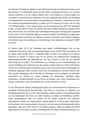 der irakischen Flüchtlinge im Libanon im Jahr 2003 unterzeichnete die libanesische Regierung ein Memorandum of Understanding (MoU) mit dem Hohen Flüchtlingskommissariat der Vereinten Nationen (UNHCR), in der der Libanon erklärte, dass er kein Asylland sei, sondern lediglich ein Transitland für Asylsuchende aus Drittländern. Das MoU verpflichtete das UNHCR, die Flüchtlinge in Zusammenarbeit mit der libanesischen Generaldirektion für Sicherheit zu registrieren und ihnen eine einjährige Aufenthaltsgenehmigung zu erteilen. Als 2011 Tausende von Syrern, die vor Krieg und Verfolgung flohen, in den Libanon kamen, war die Vereinbarung von 2003 nicht aktualisiert worden, und das UNHCR musste im Libanon ohne eine formelle Vereinbarung arbeiten. Ohne einen Mechanismus, der sicherstellt, dass Aufenthaltsgenehmigungen ordnungsgemäß ausgestellt werden, sehen sich die Flüchtlinge häufig mit unlauteren Praktiken der Mitarbeiter der allgemeinen Sicherheitsbehörden konfrontiert, die willkürlich zusätzliche Dokumente oder Gebühren verlangen und teilweise sogar die Ausstellung von Genehmigungen ohne Begründung verweigern (TIMEP 8.12.2022). Im Libanon haben 80 % der Flüchtlinge keine legalen Aufenthaltspapiere. Dies ist eine unmittelbare Folge davon, dass die libanesische Regierung dem UNHCR 2015 untersagt hat, die im Libanon ankommenden Syrer zu registrieren (RBC 5.8.2022). Der Ausbruch der Covid-19- Pandemie im Libanon im Februar 2020 hat die syrische und palästinensische Bevölkerung disproportional getroffen; die Sterberate war vier- bzw. dreimal so hoch wie der nationale Durchschnitt (AA 5.12.2022). Trotz Maßnahmen zur Verbesserung der Arbeitsbedingungen für syrische Flüchtlinge durch Abkommen wie den Libanon Compact haben die COVID-19-Pandemie und die sich verschlechternde wirtschaftliche Lage zu einer Verschlechterung der Bedingungen für Flüchtlinge beigetragen (RBC 5.8.2022). NGOs und UN-Organisationen berichten weiterhin über Fälle sexueller Belästigung und Ausbeutung von Flüchtlingen durch Arbeitgeber und Vermieter, einschließlich der Zahlung von Löhnen unterhalb des Mindestlohns, übermäßig langer Arbeitszeiten, Schuldknechtschaft und des Drucks auf Familien, einer frühen Verheiratung ihrer Töchter zuzustimmen, um die wirtschaftliche Not zu lindern (USDOS 12.4.2022). Im Jahr 2019 gab der Oberste Verteidigungsrat (HDC) den Sicherheitsdiensten Anweisungen zur verstärkten Durchsetzung der Bauvorschriften. Dies führte zur Zerstörung von Tausenden von Flüchtlingsunterkünften. Bis 31.8.2021 waren Berichten zufolge mindestens 115 Flüchtlingsfamilien von den Anweisungen zum Abriss von festen Strukturen in Zentral- und Nord-Bekaa betroffen. Einige Flüchtlingskinder leben und arbeiten auf der Straße. Angesichts des schlechten wirtschaftlichen Umfelds, der eingeschränkten Bewegungsfreiheit und der geringen Möglichkeiten für Erwachsene, ihren Lebensunterhalt zu bestreiten, sind viele syrische Flüchtlingsfamilien darauf angewiesen, dass ihre Kinder Geld für die Familie verdienen, indem sie betteln oder kleine Gegenstände auf der Straße verkaufen. Flüchtlingskinder sind stärker als libanesische Kinder von .BFA Bundesamt für Fremdenwesen und Asyl Seite 48 von 68