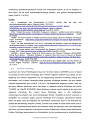 Ausbeutung, geschlechtsspezifischer Gewalt und Kinderarbeit bedroht, da sie im Vergleich zu ihren Eltern, die oft keine Aufenthaltsgenehmigung besitzen, eine größere Bewegungsfreiheit haben (USDOS 12.4.2022). Quellen: -AA - Auswärtiges Amt [Deutschland] (5.12.2022): Bericht über die asyl- und abschiebungsrelevante Lage in Libanon (Stand 7.10.2022), https://www.ecoi.net/en/file/local/2083550/Ausw%C3%A4rtiges_Amt%2C_Bericht_ %C3%Bcber_die_asyl-_und_abschiebungsrelevante_Lage_in_Libanon_ %28Stand_07.10.2022%29%2C_05.12.2022.pdf, Zugriff 25.1.2023 -RBC - ReBuild Consortium (5.8.2022): Refugees in Lebanon – problems and some solutions, https://www.rebuildconsortium.com/refugees-in-lebanon-problems-and-some-solutions/, Zugriff 26.1.2023 -TIMEP - The Tahir Institute for Middle East Policy (8.12.2022): Lebanon’s Refugee and Asylum Legal Framework, https://timep.org/explainers/lebanons-refugee-and-asylum-legal-framework/, Zugriff 26.1.2023 -TNH - The New Humanitarian (26.9.2022): Debunking the dangerous myth that refugees are an economic burden in Lebanon, https://www.thenewhumanitarian.org/opinion/2022/09/26/Syrian- refugees-Lebanon-economics, Zugriff 6.3.2023 -UNHCR - United Nations High Commissioner for Refugees (10.2022): Lebanon Fact Sheet – October 2022, https://reporting.unhcr.org/document/3918, Zugriff 26.1.2023 -UNRWA - United Nations Relief and Works Agency for Palestine Refugees (21.10.2022): Hitting Rock Bottom - Palestine Refugees in Lebanon Risk their Lives in Search of Dignity, https://reliefweb.int/report/lebanon/hitting-rock-bottom-palestine-refugees-lebanon-risk-their-lives- search-dignity-enar, Zugriff 26.1.2023 -USDOS - United States Department of State [USA] (12.4.2022): 2021 Country Report on Human Rights Practices: Lebanon, https://www.ecoi.net/de/dokument/2071165.html, Zugriff 26.1.2023 20.1. Syrische Flüchtlinge Laut Daten des Hohen Flüchtlingskommissar der Vereinten Nationen (UNHCR) waren mit Stand 31.12.2022 814.715 syrische Flüchtlinge beim UNHCR registriert (UNHCR 31.12.2022). Da die Regierung das UNHCR angewiesen hat, die Registrierung syrischer Flüchtlinge Anfang 2015 einzustellen, sind in dieser Gesamtzahl keine syrischen Flüchtlinge enthalten, die nach diesem Zeitpunkt angekommen sind (USDOS 12.4.2022). Die libanesische Regierung schätzt, dass von den sechs Millionen Menschen, die im Land leben, 1,5 Millionen syrische Flüchtlinge sind (SACD 7.11.2022; vgl. UNHCR 31.12.2022). Diese Schätzung umfasst sowohl registrierte als auch nicht registrierte Flüchtlinge. Die meisten dieser Flüchtlinge leben in den gefährdeten Aufnahmegemeinschaften unter armen Bedingungen (SACD 7.11.2022). Es kommt vereinzelt zu Übergriffen von Libanesen gegen syrische Flüchtlinge (AA 5.12.2022). Libanesische Beamte haben oft erklärt, dass die Integration der mehrheitlich sunnitischen Syrer in die Wirtschaft das System der Machtteilung zwischen Christen, Sunniten und Schiiten im Staat stören könnte (SACD 7.11.2022). Dementsprechend äußern die Libanesen häufig ihre Besorgnis über den Wettbewerb mit Syrern und ihren etablierten Unternehmen auf dem Arbeitsmarkt, während einige libanesische Politiker Flüchtlinge opportunistisch als Sündenböcke für die sozioökonomische Verschlechterung .BFA Bundesamt für Fremdenwesen und Asyl Seite 49 von 68