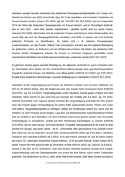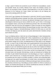 Ebenjene soziale Normen schränken die politischen Partizipationsmöglichkeiten von Frauen ein. Obwohl ein Gesetz aus 2015 vorschreibt, dass 30 % der gewählten und ernannten Positionen mit Frauen besetzt werden müssen (FH 2023; vgl. AA. 3.6.2022, BS 23.2.2022), sind nur knapp über 28 % der Sitze des Nationalen Übergangsrates mit Frauen besetzt, und im 25-köpfigen Kabinett, das im Juni 2021 - nach dem zweiten Staatsstreich - gebildet wurde, sind nur sechs Frauen vertreten (FH 2023). Gleichwohl sind die malischen Frauen entschlossen, beim Wiederaufbau des neuen Mali, das sich die Übergangsbehörden vorstellen, eine Rolle zu spielen und auch laufende politische Prozesse zu beeinflussen. So haben sich z. B. mehrere Frauengruppen zusammengetan, um das Projekt „Talking Tree“ umzusetzen, mit dem sie eine stärkere Beteiligung am politischen Leben, an Reformen und am Wahlprozess fordern. Mit lokaler wie staatlicher Hilfe konnten bereits Dialogräume exklusiv für Frauen in mehreren Regionen geschaffen sowie verschiedene Aktivitäten wie Aufklärungsveranstaltungen umgesetzt werden (ISS 10.5.2023). Es gibt kein Gesetz gegen sexuelle Belästigung, die allgemein verbreitet ist, auch in Schulen oder am Arbeitsplatz. Eine Studie von der Friedrich-Ebert-Stiftung besagt, dass geschlechtsspezifische Gewalt für malische Frauen und Mädchen zum Alltag gehört (USDOS 20.3.2023; vgl. FES 2021). Es gibt keine staatlichen Bemühungen, sexuelle Belästigung zu unterbinden (USDOS 20.3.2023). Gesetzlich ist die Vergewaltigung von Frauen wie Männern verboten und mit einer Haftstrafe von fünf bis 20 Jahren belegt, aber die Regierung setzt das Gesetz nicht konsequent durch (USDOS 20.3.2023; vgl. AA 3.6.2022). Vergewaltigungen sowie häusliche Gewalt gegen Frauen sind weit verbreitet. Meist kommt es gar nicht erst zur Anzeige der Vorfälle (AA 3.6.2022; vgl. FH 2023, USDOS 20.3.2023). Kein eigenes Gesetz verbietet die Vergewaltigung innerhalb der Ehe, jedoch kann das Gesetz gegen Vergewaltigung für solche Fälle angewendet werden. Polizei und Justiz sind willens, Vergewaltigungsfälle zu verfolgen, stellen die Ermittlungen jedoch ein, wenn sich die Parteien vor dem Prozess privat einigen. Laut dem US-amerikanischen Außenministerium fördert dies ein Umfeld, in dem Betroffene von ihren Familien unter Druck gesetzt werden, eine finanzielle Entschädigung zu akzeptieren, anstatt auf dem Rechtsweg Gerechtigkeit zu suchen (USDOS 20.3.2023). Die bis dato neuste, 2019 erschienene „l’Enquête Démographique et de Santé du Mali (EDSM-VI)“ besagt, dass jede zweite - 49 % - verheiratete oder geschiedene Frau Gewalt in ihrer Ehe erlebt hat, sei es körperlich, sexuell oder emotional (INSTAT 2019; vgl. FES 2021). Häusliche Gewalt ist weit verbreitet (USDOS 20.3.2023). 43 % der Frauen zwischen 15 und 49 Jahren haben seit ihrem 15. Lebensjahr körperliche Gewalt erfahren, 13 % sexuelle Gewalt. Zudem haben 68 % dieser Frauen nie Hilfe gesucht oder es jemandem erzählt (INSTAT 2019; vgl. USDOS 20.3.2023). Gewalt in der Ehe ist ein Verbrechen, aber das Gesetz verbietet häusliche Gewalt nicht explizit. Körperverletzung wird mit Gefängnisstrafen von einem bis fünf Jahren sowie hohen Geldstrafen geahndet. Die Strafe kann auf bis zu zehn Jahre Haft erhöht werden, falls diese Straftat vorsätzlich .BFA Bundesamt für Fremdenwesen und Asyl Seite 48 von 66