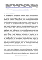 - UNGA – United Nations General Assembly / Human Rights Council (10.11.2021): Compilation on the Republic of Moldova: Report of the Office of the United Nations High Commissioner for Human Rights (A/HRC/WG.6/40/MDA/2), https://www.ecoi.net/en/file/local/2065971/A_HRC_WG.6_40_MDA_2_E.pdf, Zugriff 19.1.2022 - USDOS – US Department of State [USA] (12.5.2021): 2020 Report on International Religious Freedom: Moldova, https://www.ecoi.net/de/dokument/2051667.html, Zugriff 28.12.2021 15. Ethnische Minderheiten Die Republik Moldau ist ein Vielvölkerstaat, in welchem zahlreiche Volksgruppen friedlich zusammenleben. Die nationalen Minderheiten sind durch die Verfassung geschützt und haben das Recht auf Aufrechterhaltung und Pflege ihrer Sprache und Kultur. Eine nach Hautfarbe, Herkunft oder Zugehörigkeit zu einer ethnischen Gruppe unterscheidende diskriminierende Gesetzgebung gibt es in der Republik Moldau nicht. Das im Jänner 2013 in Kraft getretene Gleichstellungsgesetz verbietet Diskriminierungen verschiedenster Art, unter anderem aufgrund von Religion (AA 31.1.2022). Kein Gesetz beschränkt die Teilnahme von Minderheiten am politischen Prozess, und Minderheiten nehmen in der Praxis daran teil. Gesetzliche Vorgaben sehen Sanktionen gegen politische Parteien vor, welche diskriminierende Botschaften öffentlich verbreiten (USDOS 30.3.2021). Im November 2017 hat die Regierung den Aktionsplan zur Strategie zur Konsolidierung der interethnischen Beziehungen für die Jahre 2017-2027 verabschiedet. Bei der Umsetzung stellt sich neben mangelndem politischen Willen vieler Ministerien die unzureichende Finanzierung als problematisch dar. Gemäß der letzten Volkszählung aus dem Jahr 2014 bezeichnen sich 75,1% der Einwohner als Moldauer, 7% als ethnische Rumänen, 6,6% als Ukrainer, 4,6% als Gagausen, 4,1% als Russen, 1,9% als Bulgaren und 0,3% als Roma. Die Minderheit der Gagausen (126.010 Personen laut Volkszählung 2014) genießt weitgehende Autonomierechte. Die Sprache der Minderheiten ist in der Regel Russisch. In den Siedlungsgebieten der Minderheiten mangelt es häufig an muttersprachlichem Unterricht, sodass Schüler, welche Ukrainisch, Gagausisch oder Bulgarisch lernen möchten, russischsprachige Schulen besuchen müssen, die wiederum Kindern aus Minderheiten unzureichende Möglichkeiten bieten, die Staatssprache (Rumänisch bzw. „Moldauisch“) zu erlernen (AA 31.1.2022). Öffentliche Dokumente und Gesetze werden nicht regelmäßig in Minderheitensprachen übersetzt (UNGA 10.11.2021; vgl. BS 2020). Teile der moldauischen Gruppe der Roma (9.323 Personen gemäß der Volkszählung 2014) zählen zu der am meisten marginalisierten gesellschaftlichen Gruppe (geringer Bildungsstand, begrenzter Zugang zu Gesundheitsversorgung, höhere offizielle Arbeitslosenrate), wobei eine gezielte Benachteiligung durch andere Bevölkerungsgruppen nicht vorliegt (AA 31.1.2022; vgl. USDOS 30.3.2021, FH 3.3.2021). 45% der Roma sind arbeitslos. Nur die Hälfte der Roma-Kinder .BFA Bundesamt für Fremdenwesen und Asyl Seite 28 von 42
