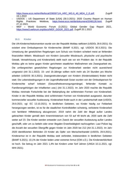 https://www.ecoi.net/en/file/local/2065971/A_HRC_WG.6_40_MDA_2_E.pdf, Zugriff 19.1.2022 - USDOS – US Department of State [USA] (30.3.2021): 2020 Country Report on Human Rights Practices: Moldova, https://www.ecoi.net/de/dokument/2048126.html, Zugriff 27.12.2021 - WEF – World Economic Forum (3.2021): Global Gender Gap Report 2021, https://www3.weforum.org/docs/WEF_GGGR_2021.pdf, Zugriff 20.1.2022 16.2. Kinder Die UN-Kinderrechtskonvention wurde von der Republik Moldau ratifiziert (USDOL 29.9.2021). Es existiert eine Ombudsperson für Kinderrechte (BAMF 6.2021; vgl. USDOS 30.3.2021). Die Umsetzung der gesetzlichen Regelungen zum Schutz von Kindern scheitert meist an fehlenden finanziellen Mitteln. Missbrauch von Kindern (sexueller Missbrauch, physische und psychische Gewalt, Verwahrlosung und Kinderarbeit) stellt nach wie vor ein Problem dar. In der Republik Moldau gibt es keine gegen Kinder gerichteten staatlichen Maßnahmen wie Zwangsarbeit etc. Die umfangreichen gesetzlichen Regelungen zur Kinderarbeit werden nicht ausreichend umgesetzt (AA 31.1.2022). 15- und 16-Jährige sollten nicht mehr als 24 Stunden pro Woche arbeiten (USDOS 30.3.2021). Zwangsrekrutierungen von Kindern (Kindersoldaten) finden nicht statt. Die Lebensbedingungen in der Jugendhaftanstalt Goian wurden von der Ombudsperson für Kinderrechte scharf kritisiert (Gesundheitsversorgungsmängel, fehlender Kontakt zu Familienangehörigen der Inhaftierten usw.) (AA 31.1.2022). Im Jahr 2020 machte die Republik Moldau minimale Fortschritte bei der Bekämpfung der schlimmsten Formen von Kinderarbeit. Kinder in der Republik Moldau sind schlimmsten Formen von Kinderarbeit ausgesetzt, darunter kommerzieller sexueller Ausbeutung. Kinderarbeit findet auch in der Landwirtschaft statt (USDOL 29.9.2021; vgl. EC 13.10.2021). In ländlichen Gebieten, wo Kinder häufig zur Feldarbeit herangezogen werden, ist es für die staatlichen Kontrollstellen schwierig, verbotene Kinderarbeit von familiärer Hilfeleistung abzugrenzen. 2019 nahm die Zahl der illegal außer Landes gebrachten Kinder gemäß dem Innenministerium von 53 auf 49 leicht ab, 2020 sank die Zahl weiter auf 23. Die Kinder werden entweder zum Zweck der sexuellen Ausbeutung außer Landes geschafft, oder um zu betteln oder einer illegalen Erwerbstätigkeit nachzugehen. Laut Polizei lag die Anzahl der sexuellen Übergriffe gegen Kinder im Jahr 2020 bei 212 (AA 31.1.2022). Im Jahr 2020 identifizierten Behörden 23 Kinder als Opfer von Menschenhandel (USDOL 29.9.2021). Kinderarmut ist in der Republik Moldau weit verbreitet, insbesondere in ländlichen Gebieten (BAMF 6.2021). 10,1% der Kinder leiden unter extremer Armut (IOM o.D.). Die Kindersterblichkeit ist hoch. Sie betrug im Jahr 2021 1,4% bei Kindern unter fünf Jahren (UNGA 10.11.2021; vgl. WHI 2021). .BFA Bundesamt für Fremdenwesen und Asyl Seite 32 von 42