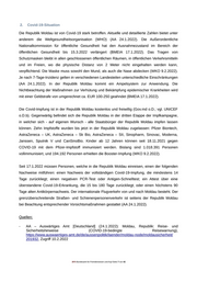 2. Covid-19-Situation Die Republik Moldau ist von Covid-19 stark betroffen. Aktuelle und detaillierte Zahlen bietet unter anderem die Weltgesundheitsorganisation (WHO) (AA 24.1.2022). Die Außerordentliche Nationalkommission für öffentliche Gesundheit hat den Ausnahmezustand im Bereich der öffentlichen Gesundheit bis 15.3.2022 verlängert (BMEIA 17.1.2022). Das Tragen von Schutzmasken bleibt in allen geschlossenen öffentlichen Räumen, in öffentlichen Verkehrsmitteln und im Freien, wo die physische Distanz von 2 Meter nicht eingehalten werden kann, verpflichtend. Die Maske muss sowohl den Mund, als auch die Nase abdecken (WKO 9.2.2022). Je nach 7-Tage-Inzidenz gelten in verschiedenen Landesteilen unterschiedliche Einschränkungen (AA 24.1.2022). In der Republik Moldau kommt ein Ampelsystem zur Anwendung. Die Nichtbeachtung der Maßnahmen zur Verhütung und Bekämpfung epidemischer Krankheiten wird mit einer Geldstrafe von umgerechnet ca. EUR 100-250 geahndet (BMEIA 17.1.2022). Die Covid-Impfung ist in der Republik Moldau kostenlos und freiwillig (Gov.md o.D.; vgl. UNICEF o.D.b). Gegenwärtig befindet sich die Republik Moldau in der dritten Etappe der Impfkampagne, in welcher sich - auf eigenen Wunsch - alle Staatsbürger der Republik Moldau impfen lassen können. Zehn Impfstoffe wurden bis jetzt in der Republik Moldau zugelassen: Pfizer Biontech, AstraZeneca – UK, AstraZeneca – Sk Bio, AstraZeneca – SII, Sinopharm, Sinovac, Moderna, Janssen, Sputnik V und CanSinoBio. Kinder ab 12 Jahren können seit 18.11.2021 gegen COVID-19 mit dem Pfizer-Impfstoff immunisiert werden. Bislang sind 1.018.391 Personen vollimmunisiert, und 194.192 Personen erhielten die Booster-Impfung (WKO 9.2.2022). Seit 17.1.2022 müssen Personen, welche in die Republik Moldau einreisen, einen der folgenden Nachweise mitführen: einen Nachweis der vollständigen Covid-19-Impfung, die mindestens 14 Tage zurückliegt; einen negativen PCR-Test oder Antigen-Schnelltest; ein Attest über eine überstandene Covid-19-Erkrankung, die 15 bis 180 Tage zurückliegt; oder einen höchstens 90 Tage alten Antikörpernachweis. Der internationale Flugverkehr von und nach Moldau besteht. Der grenzüberschreitende Straßen- und Schienenpersonenverkehr ist seitens der Republik Moldau bei Beachtung entsprechender Vorsichtsmaßnahmen gestattet (AA 24.1.2022). Quellen: - AA – Auswärtiges Amt [Deutschland] (24.1.2022): Moldau, Republik: Reise- und Sicherheitshinweise (COVID-19-bedingte Reisewarnung), https://www.auswaertiges-amt.de/de/aussenpolitik/laender/moldau-node/moldausicherheit/ 201932, Zugriff 10.2.2022 .BFA Bundesamt für Fremdenwesen und Asyl Seite 7 von 42