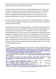 politisch polarisiert, und die Anwendung des journalistischen des journalistischen Ethikkodex und professionellen Standards ist uneinheitlich (EK 8.11.2023). Die Regierung begann 2022 mit einer Reform der Mediengesetzgebung, hatte sie aber bis zum Jahresende nicht abgeschlossen. Durch neue Regeln für die Registrierung von Online-Medien verringerte sich die Zahl der Anbieter erheblich. Online-Inhalte wurden weiterhin nur locker reguliert, und zivilgesellschaftliche Organisationen warnten, dass Portale sich nicht an ihre gesetzliche Verpflichtung zur Entfernung von verhetzenden Inhalten hielten (FH 24.5.2023). Im Laufe des Jahres 2022 wurden 25 tätliche Angriffe auf Journalisten gemeldet. Im September 2022 bat die Regierung ausländische Experten um Unterstützung bei der erneuten Untersuchung historischer Fälle (AI 28.3.2023). In Montenegro gibt es eine Reihe unabhängiger Medien, und die Medienberichterstattung ist bei bestimmten Themen parteiisch und kämpferisch. Die staatliche Rundfunk- und Fernsehanstalt von Montenegro (RTCG) hat Fortschritte bei der Umwandlung in eine echte öffentlich-rechtliche Rundfunkanstalt gemacht und zeichnet sich durch eine ausgewogenere redaktionelle Politik sowie integrativere und vielfältigere politische Inhalte aus. Meinungsumfragen im Jahr 2022 zeigten, dass das Vertrauen der Öffentlichkeit in RTCG gestiegen ist und die Zuschauerzahlen zugenommen haben. Der fehlende Druck von außen in den Jahren 2021 und 2022 führte dazu, dass die interne Zensur in den Medienhäusern und die Selbstzensur unter den Journalisten an Bedeutung verloren. Reporter, die über Korruption und organisierte Kriminalität berichten, sind nach wie vor der Gefahr von Gewalt ausgesetzt (FH 2023). Quellen: - AA – Auswärtiges Amt [Deutschland] (26.5.2023): Bericht im Hinblick auf die Einstufung von Montenegro als sicheres Herkunftsland im Sinne des § 29 a AsylG (Stand: April 2023), https://www.ecoi.net/en/file/local/2092799/Ausw%C3%A4rtiges_Amt%2C_Bericht_im_Hinblick_a uf_die_Einstufung_von_Montenegro_als_sicheres_Herkunftsland_im_Sinne_des_%C2%A7_29_ a_AsylG_%28Stand_April_2023%29%2C_26.05.2023.pdf, Zugriff 24.1.2024 - AI – Amnesty International (28.3.2023): Amnesty International Report 2022/23; Zur weltweiten Lage der Menschenrechte; Montenegro 2022, https://www.ecoi.net/de/dokument/2094438.html, Zugriff 7.2.2024 - EK - Europäische Kommission (8.11.2023): Montenegro 2023 Report [SWD(2023) 694 final], https://www.ecoi.net/en/file/local/2101213/SWD_2023_694+Montenegro+report.pdf, Zugriff 30.1.2024 - FH - Freedom House (24.5.2023): Nations in Transit 2023 - Montenegro, https://www.ecoi.net/de/dokument/2092904.html, Zugriff 31.1.2024 - FH - Freedom House (2023): Freedom in the World 2023 - Montenegro, https://www.ecoi.net/de/dokument/2088541.html, Zugriff 8.2.2024 - USDOS – US Department of State [USA] (20.3.2023): 2022 Country Report on Human Rights Practices: Montenegro, https://www.ecoi.net/de/dokument/2089698.html, Zugriff 25.1.2024 .BFA Bundesamt für Fremdenwesen und Asyl Seite 22 von 35