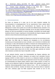 -BS – Bertelsmann Stiftung (23.2.2022): BTI 2022 - Myanmar Country Report, https://www.ecoi.net/en/file/local/2069711/country_report_2022_MMR.pdf, Zugriff 23.8.2022 -FH – Freedom House (28.2.2022): Freedom in the World 2022 – Myanmar, https://www.ecoi.net/de/dokument/2068763.html, Zugriff 23.8.2022 -ICJ – International Commission of Jurists (10.2.2022): Myanmar: A year after military takeover, no rule of law or judicial independence, https://www.icj.org/myanmar-a-year-after-military-takeover- no-rule-of-law-or-judicial-independence/, Zugriff 23.8.2022 -USDOS – US Department of States [USA] (12.4.2022): 2021 Country Reports on Human Rights Practices: Burma, https://www.ecoi.net/en/document/2071145.html, Zugriff 23.8.2022 6. Sicherheitsbehörden Die Polizei von Myanmar ist in erster Linie für die innere Sicherheit zuständig. Die Grenzschutzpolizei ist verwaltungstechnisch Teil der myanmarischen Polizei, operativ jedoch eigenständig. Beide unterstehen dem Innenministerium des Regimes, das von einem Militärgeneral im aktiven Dienst geleitet wird und selbst dem Militärkommando unterstellt ist. Die dem Verteidigungsministerium unterstellten Streitkräfte sind für die äußere Sicherheit zuständig, befassen sich aber fast ausschließlich mit internen Aktivitäten, einschließlich des Kampfes gegen bewaffnete ethnische Gruppen. Angehörige der Sicherheitskräfte des Regimes begingen weiterhin zahlreiche schwere Menschenrechtsverletzungen (USDOS 12.4.2022). Von 2015 bis 2020 musste die gewählte NLD-Regierung von Aung San Suu Kyi die Macht mit dem Militär teilen. Das Militär legte der Regierung eine Zwangsjacke an; die zivil-militärische Koordinierung und Zusammenarbeit war kaum vorhanden, und es herrschte ein erhebliches Maß an Misstrauen. Im März 2020 blockierten die Militärs im Parlament eine Verfassungsänderung, mit der die Zahl der Militärvertreter im Parlament schrittweise verringert worden wäre. Sie legten auch ihr Veto gegen eine Änderung ein, die es ermöglicht hätte, dass Militär und Polizei von zivilen Gerichten verurteilt werden können (BS 23.2.2022). Das Militär agiert außerhalb der Kontrolle ziviler Institutionen und bildet einen Staat im Staat (BBC 2.2.2022). Es gab zahlreiche Berichte, wonach die Sicherheitskräfte des Regimes willkürliche oder rechtswidrige Tötungen von Zivilisten, Gefangenen und anderen ihnen unterstellten Personen begangen (USDOS 12.4.2022). Überall im Land kam es zu militärischen Angriffen auf friedliche Demonstranten, bei denen auch tödliche Gewalt angewendet wurde (FH 28.2.2022). Die Übergriffe der Sicherheitskräfte des Regimes blieben weiterhin nahezu straffrei (USDOS 12.4.2022). Als Reaktion auf die militärischen Angriffe der Tatmadaw bildeten zivile Jugendliche im ganzen Land bewaffnete Volksverteidigungskräfte (People’s Defense Forces - PDF), die Guerillaangriffe auf militärische Ziele durchführten. Nachdem die National Unity Government (NUG) im September 2021 einen „Volkskrieg“ gegen das Militär ausgerufen hatte, bemühte sie sich um eine .BFA Bundesamt für Fremdenwesen und Asyl Seite 20 von 55