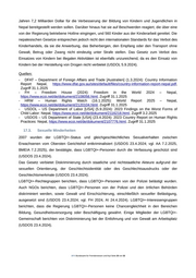 Jahren 7,2 Milliarden Dollar für die Verbesserung der Bildung von Kindern und Jugendlichen in Nepal bereitgestellt werden sollen. Darüber hinaus hat sie auf Beschwerden reagiert, die über eine von der Regierung betriebene Hotline eingingen, und 560 Kinder aus der Kinderarbeit gerettet. Die nepalesischen Gesetze entsprechen jedoch nicht den internationalen Standards für das Verbot des Kinderhandels, da sie die Anwerbung, das Beherbergen, den Empfang oder den Transport ohne Gewalt, Betrug oder Zwang nicht eindeutig unter Strafe stellen. Das Gesetz zum Verbot des Einsatzes von Kindern bei illegalen Aktivitäten ist ebenfalls unzureichend, da es den Einsatz von Kindern bei der Herstellung von Drogen nicht verbietet (USDOL 5.9.2024). Quellen: - DFAT – Department of Foreign Affairs and Trade [Australien] (1.3.2024): Country Information Report Nepal, https://www.dfat.gov.au/sites/default/files/country-information-report-nepal.pdf, Zugriff 31.1.2025 - FH – Freedom House (2024): Freedom in the World 2024 – Nepal, https://www.ecoi.net/de/dokument/2108056.html, Zugriff 31.1.2025 - HRW – Human Rights Watch (16.1.2025): World Report 2025 – Nepal, https://www.ecoi.net/de/dokument/2120104.html, Zugriff 31.1.2025 - USDOL – US Department of Labor [USA] (5.9.2024): 2023 Findings on the Worst Forms of Child Labor: Nepal, https://www.ecoi.net/de/dokument/2116218.html, Zugriff 3.2.2025 - USDOS – US Department of State [USA] (23.4.2024): 2023 Country Report on Human Rights Practices: Nepal, https://www.ecoi.net/de/dokument/2107776.html, Zugriff 31.1.2025 17.3. Sexuelle Minderheiten 2007 wurden der LGBTQI+-Status und gleichgeschlechtliches Sexualverhalten zwischen Erwachsenen vom Obersten Gerichtshof entkriminalisiert (USDOS 23.4.2024; vgl. AA 7.2.2025, BMEIA 7.2.2025), der bestätigte, dass LGBTQI+-Personen durch die Verfassung geschützt sind (USDOS 23.4.2024). Das Gesetz verbietet Diskriminierung durch staatliche und nichtstaatliche Akteure aufgrund der sexuellen Orientierung, der Geschlechtsidentität oder des Geschlechtsausdrucks oder der Geschlechtsmerkmale (USDOS 23.4.2024). LGBTQI+-Rechtegruppen berichten, dass LGBTQI+-Personen von der Polizei belästigt wurden. Auch NGOs berichten, dass LGBTQI+-Personen von der Polizei und den örtlichen Behörden diskriminiert werden, sowie Gewalt und Einschüchterung, einschließlich sexueller Belästigung, ausgesetzt sind (USDOS 23.4.2024; vgl. FH 2024, AI 24.4.2024). LGBTQI+-Interessengruppen berichten, dass die Regierung LGBTQI+-Personen keine Chancengleichheit in den Bereichen Bildung, Gesundheitsversorgung oder Beschäftigung gewährt. Einige Mitglieder der LGBTQI+- Gemeinschaft berichten von Diskriminierung bei der Entlohnung und von Gewalt am Arbeitsplatz (USDOS 23.4.2024). .BFA Bundesamt für Fremdenwesen und Asyl Seite 25 von 32