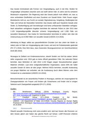 .BFA Bundesamt für Fremdenwesen und Asyl Seite 12 von 21 Verschwindenlassen von Personen, Folter oder unmenschliche Behandlung sind nicht bekannt geworden. Sämtliche Regierungen seit 1990 bekennen sich uneingeschränkt zu den Menschenrechten. Nicaragua ist Mitglied der wichtigsten internationalen Menschenrechtspakte und im Menschenrechtsrat der Vereinten Nationen. (AA 10.2016e) Zu den wichtigsten Menschenrechtsverletzungen zählen hauptsächlich Einschränkungen des Wahlrecht, der Meinungs- und Pressefreiheit und verbreitete Korruption (auch in Polizei, Justiz und anderen Regierungsorganen), sowie gesellschaftliche Gewalt (hauptsächlich gegen Frauen und LGBT-Personen). Weitere erhebliche Menschenrechtsverletzungen umfassen eine stark parteiische Politik, Polizeigewalt, harte Haftbedingungen, willkürliche und lange Untersuchungshaft, Einschüchterung von Journalisten, Medien und NGOs, Diskriminierung von ethnischen Minderheiten, Menschen mit Behinderung und HIV/AIDS- Kranke sowie Verletzung der Gewerkschaftsrechte (USDOS 13.4.2016) Quellen: - AA - Auswärtiges Amt (10.2016e): Innenpolitik, http://www.auswaertiges-amt.de/DE/Aussenpolitik/Laender/Laenderinfos/Nicaragua/ Innenpolitik_node.html, Zugriff 18.10.2016 - USDOS - US Department of State (13.4.2016): Country Reports on Human Rights Practices 2015, Nicaragua, http://www.ecoi.net/local_link/322620/448395_en.html, Zugriff 18.10.2016 12.Meinungs- und Pressefreiheit Meinungs- und Pressefreiheit sind gegeben. Regierungskritische Medien werden aber zu offiziellen Terminen nicht eingeladen. Es wird subtiler Druck ausgeübt, Tendenzen der Selbstzensur steigen. Die Medienlandschaft konzentriert sich in zwei Blöcken: Einem regierungsnahen, der finanziell teilweise mit der Familie Ortega verflochten ist, und einem oppositionellen Block, der sich um die Familie der früheren Präsidentin Chamorro gruppiert (AA 10.2016e). Obwohl die Verfassung Meinungs- und Pressefreiheit garantiert, verwendet die Regierung administrative, justizielle und finanzielle Möglichkeiten um die Ausübung dieser Rechte einzuschränken. Unabhängige Medien sind aktiv und verbreiten eine Bandbreite an Sichtweisen. Die Regierung versucht durch Schikane, Zensur, willkürliche Anwendung von Verleumdungsklagen und den Vorwand der nationalen Sicherheit die Pressefreiheit zu beschränken. Präsident Ortega nutzt gelegentlich das Recht der Regierung auf Ausstrahlung von Notfallbotschaften, um seine Reden zu übertragen bzw. um Sender dazu zu zwingen, während dieser Zeit ein anderes Programm einzustellen. Die Regierung setzt weiterhin direkte und indirekte Mittel ein, um unabhängige Radiosender unter Druck zu setzen und versucht diese aus angeblich politischen Gründen zu schließen. Regierungsbeamte und