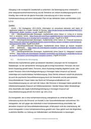 Bei ihrer Ankunft in Norwegen werden die Antragsteller zunächst in einem Ankunftszentrum untergebracht, wo die Gemeinde die notwendige Gesundheitsversorgung sicherstellt. Bei der Überstellung in eine reguläre Aufnahmeeinrichtung liegt die Verantwortung für die Gesundheitsversorgung beim öffentlichen Gesundheitswesen der Gemeinde (EUAA 25.4.2023). Minderjährige (bis zum Alter von 18 Jahren) haben unabhängig von ihrem Status Anspruch auf alle Arten der Gesundheitsversorgung (EUAA 25.4.2023). MedCOI bearbeitet keine medizinischen Anfragen zu EU-Mitgliedsstaaten (EUAA MedCOI 19.2.2021). Quellen: - EUAA – EU Asylagentur (25.4.2023): Information on procedural elements and rights of applicants subject to a Dublin transfer to Norway, https://euaa.europa.eu/sites/default/files/2023- 05/factsheet_dublin_transfers_no.pdf, Zugriff 24.6.2025 - EUAA MedCOI – Medical COI (19.2.2021): Auskunft von EUAA MedCOI, per E-Mail - UDI – Utlendingsdirektoratet [Norwegen, Asylbehörde] (ohne Datum e): Healthcare, https://www.udi.no/en/have-applied/protection-asylum/ordinary-asylum-reception-centre/ healthcare/#link-8677, Zugriff 24.6.2025 7. Schutzberechtigte Erhält ein Antragsteller internationalen Schutz, wird eine Aufenthaltserlaubnis, normalerweise für fünf Jahre (verlängerbar), ausgestellt. Die Unterbringung erfolgt in einer durch das Directorate of Integration and Diversity (IMDI) zugewiesenen Gemeinde. Familienzusammenführung ist binnen einer bestimmten Frist ohne Einkommenserfordernis möglich (UDI o.D.m; vgl. Asylinfo o.D.). Es besteht das Recht, in Norwegen zu arbeiten, sowie die Verpflichtung an Norwegisch- und Sozialkundeunterricht teilzunehmen. Jede in Norwegen lebende Person erhält eine persönliche Identifikationsnummer (Asylinfo o.D.). Personen, denen eine Aufenthaltsgenehmigung für Norwegen erteilt wurde, müssen in einer Gemeinde wohnen. Wer sich in einer Asylaufnahmeeinrichtung, einer Notunterkunft oder einer alternativen Unterkunft aufhält, muss keinen Antrag auf Ansiedlung stellen, da automatisch eine Ansiedlungsgemeinde zugewiesen wird. Man erhält nur ein Angebot zur Ansiedlung in einer Gemeinde, die sich in jeder Gemeinde in Norwegen befinden kann. Gemäß § 46 des Integrationsgesetzes können Antragsteller keine Beschwerde gegen die Entscheidung über die Ansiedlung einlegen und eine Ablehnung eines Niederlassungsangebots hat in der Regel zur Folge, dass man das Recht auf Teilnahme am Einführungsprogramm und auf Einführungsbeihilfe verliert und sich finanziell selbst versorgen muss. Soweit möglich berücksichtigt IMDI bei der Wahl der Ansiedlungsgemeinde enge Familienangehörige, Bildungs- und Berufspläne sowie sonstige FA Bundesamt für Fremdenwesen und Asyl Seite 11 von 12