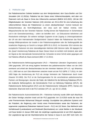 2. Politische Lage Die Palästinensischen Gebiete bestehen aus dem Westjordanland, dem Gaza-Streifen und Ost- Jerusalem (AA 3.2.2022a). Palästina hat den Status eines Völkerrechtssubjekts, wird aber von Österreich nicht als Staat im Sinne des Völkerrechts anerkannt (BMEIA 18.5.2022). 138 der 193 Mitgliedsstaaten der Vereinten Nationen (UN) stimmten am 29.11.2012 für eine Aufwertung des völkerrechtlichen Status der Palästinenser zu einem „Beobachterstaat“. Konkret bedeutet der Beobachterstatus als Nicht-Mitgliedstaat, den etwa auch der Vatikan innehat, mehr Mitspracherechte bei den Vereinten Nationen. Künftig können die Palästinenser im Sicherheitsrat und in der Gener alversammlung – sofern sie betroffen sind – an Diskussionen teilnehmen und Resolutionen einbringen. Ein weiterer wichtiger Zugewinn ist der Zugang zu Unterorganisationen der UN wie dem Internationalen Strafgerichtshof. Dadurch hätten die Palästinenser das Recht, etwaige Militäroperationen der Israelis in den Palästinensergebieten oder die Siedlungspolitik der israelischen Regierung vor Gericht zu bringen (BPB 30.11.2012). Im Dezember 2014 stimmte das europäische Parlament mit einer überwältigenden Mehrheit (498 Stimmen dafür, 88 dagegen) für die „Quasi“-Anerkennung Palästinas als Staat. Dieses Votum ist rechtlich nicht bindend, aber stellt ein Signal an die internationale Gemeinschaft dar. Schweden ist einen Schritt weiter gegangen und hat Palästina offiziell als Staat anerkannt (BBC 17.12.2014). Die Palästinensische Befreiungsorganisation (PLO – Palestinian Liberation Organisation) wurde 1964 gegründet, 1974 als einzig legitime Vertreterin des palästinensischen Volkes von der UNO anerkannt und erhielt den Beobachterstatus bei den Vereinten Nationen (VP o.D.; vgl. Britannica o.D.). 1993 kam es zum Oslo-Abkommen zwischen Israel und der PLO (BPB 17.7.2011). Im Jahr 1993 folgte die Anerkennung der PLO als einzige Vertreterin der Palästinenser durch Israel (Haaretz 9.9.1993). Die PLO ist die Dachorganisation für die verschiedenen palästinensischen Parteien und Bewegungen, darunter die Fatah, die Volksfront für die Befreiung Palästinas (PFLP), die Arabische Befreiungsfront, die Demokratische Front zur Befreiung Palästinas (DFLP), die Palästinensische Befreiungsfront (PLF) und die Palästinensische Volkspartei (PPP). Hamas und Islamischer Jihad sind nicht in der PLO vertreten (VP o.D.; vgl. SZ 12.1.2018). Die Palästinensische Autonomiebehörde (PA – Palestinian Authority) wurde 1994 nach Abschluss der Osloer Verträge zwischen Israel und der PLO gegründet. Am 13.4.2019 wurde die neue PA unter Premierminister Mohammad Shtayyeh vereidigt. Grundpfeiler des politischen Systems sind der Präsident, die Regierung unter Vorsitz eines Premierministers sowie das Parlament, der sogenannte Legislativrat (Palestinian National Council – PLC ) mit 132 Sitzen. Das Wahlrecht sieht Verhältniswahl (Landesebene) und Direktwahl (Bezirksebene) vor. Letzte Wahlen in der Westbank und Gaza fanden im Januar 2006 statt; die vierjährige Legislaturperiode ist seit 2010 abgelaufen. Der Legislativrat tagt seit der Machtübernahme der Hamas in Gaza im Juni 2007 nicht mehr. Am .BFA Bundesamt für Fremdenwesen und Asyl Seite 7 von 50