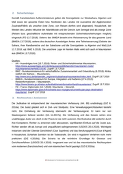 2. Sicherheitslage Gemäß französischem Außenministerium gelten die Grenzgebiete zur Westsahara, Algerien und Mali sowie der gesamte Osten bzw. Nordosten des Landes mit Ausnahme der Agglomeration Zouérate/Fdêrik als unsicher (rote Zone, von Reisen dorthin wird abgeraten). Nouakchott, der Westen des Landes inklusive der Atlantikküste und die Grenze zum Senegal sind als orange Zone (Reisen bzw. geschäftliche Aufenthalte mit entsprechenden Sicherheitsvorkehrungen möglich) eingestuft (FD 13.7.2018). Seitens des BMEIA besteht eine Reisewarnung für das gesamte Land (BMEIA 13.7.2018), seitens des deutschen Auswärtigen Amtes eine Teilreisewarnung (Gebiete der Sahara, ihrer Randbereiche und der Sahelzone und die Grenzgebiete zu Algerien und Mali) (AA 13.7.2018; vgl. BMZ 6.2018). Die unsichere Lage im Norden Malis wirkt sich auch in Mauretanien aus (BMEIA 13.7.2018). Quellen: - AA - Auswärtiges Amt (13.7.2018): Reise- und Sicherheitshinweise Mauretanien, https://www.auswaertiges-amt.de/de/aussenpolitik/laender/mauretanien-node/ mauretaniensicherheit/219190, Zugriff 13.7.2018 - BMZ - Bundesministerium für wirtschaftliche Zusammenarbeit und Entwicklung (6.2018): Afrika südlich der Sahara – Mauretanien, http://www.bmz.de/de/laender_regionen/subsahara/mauretanien/index.html, Zugriff 13.7.2018 - BMEIA - Bundesministerium für Europa, Integration und Äußeres (27.4.2015): Reiseinformationen – Mauretanien, https://www.bmeia.gv.at/reise-aufenthalt/reiseinformation/land/mauretanien/, Zugriff 13.7.2018 - FD - France Diplomatie (13.7.2018): Mauritanie – Sécurité, https://www.diplomatie.gouv.fr/fr/conseils-aux-voyageurs/conseils-par-pays-destination/ mauritanie/, Zugriff 13.7.2018 3. Rechtsschutz / Justizwesen Die Judikative ist entsprechend der mauretanischen Verfassung (Art. 89) unabhängig (GIZ 6. 2018a). Die Justiz gliedert sich in Zivil- und Strafjustiz. Eine Verwaltungsgerichtsbarkeit besteht nicht. Die Einhaltung der Verfassung überwacht der Verfassungsrat. Er kann nur von Staatsorganen befasst werden (AA 11.2017a). Die Verfassung und das Gesetz sehen eine unabhängige Justiz vor, doch in der Praxis ist sie nicht autonom. Die Exekutive übt weiterhin durch ihre Kompetenz, Richter zu ernennen oder abzusetzen, signifikanten Einfluss auf die Justiz aus. Richter werden oft als korrupt und unqualifiziert wahrgenommen (USDOS 20.4.2018). Wichtigste Instanzen sind der Oberste Gerichtshof (Cour Suprême) und das Berufungsgericht (Cour d’Appel) in Nouakchott. Schärfste Sanktion ist die Todesstrafe. Sie wird in regulären Verfahren nicht mehr praktiziert (GIZ 6.2018a). Die Scharia ist die rechtliche Grundlage für Gesetze und Gerichtsverfahren (USDOS 20.4.2018). Insgesamt war und ist das mauretanische Rechtssystem vom modernen (französischen) und vom islamischen Recht geprägt (GIZ 6.2018a). .BFA Bundesamt für Fremdenwesen und Asyl Seite 6 von 19