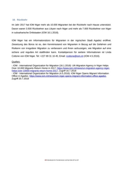 18. Rückkehr Im Jahr 2017 hat IOM Niger mehr als 10.000 Migranten bei der Rückkehr nach Hause unterstützt. Davon waren 3.500 Rückkehrer aus Libyen nach Niger und mehr als 7.000 Rückkehrer von Niger in subsaharische Drittstaaten (IOM 16.1.2018). IOM Niger hat ein Informationsbüro für Migranten in der nigrischen Stadt Agadez eröffnet. Ziesetzung des Büros ist es, den Kenntnisstand von Migranten in Bezug auf die Gefahren und Risikenn von irregulärer Migration zu verbessern und ihnen aufzuzeigen, wie Migration auf eine sichere und reguläre Art stattfinden kann. Kontaktperson für weitere Informationen ist Linda Cottone von IOM Niger. Tel: +227 89 31 16 45, Email: rcottone@iom.int (IOM 4.5.2016). Quellen: - IOM - International Organization for Migration (16.1.2018): UN Migration Agency in Niger Helps Over 10,000 Migrants Return Home in 2017, https://www.iom.int/news/un-migration-agency-niger- helps-over-10000-migrants-return-home-2017, Zugriff 16.7.2018 - IOM - International Organization for Migration (4.5.2016): IOM Niger Opens Migrant Information Office in Agadez, https://www.iom.int/news/iom-niger-opens-migrant-information-office-agadez, Zugriff 20.7.2018 .BFA Bundesamt für Fremdenwesen und Asyl Seite 17 von 17
