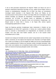 In den an Mali grenzenden Departements der Regionen Tillabéri und Tahoua wie auch im gesamten Länderdreieck Mali-Burkina Faso-Niger, die sog. „Liptako Gourma“-Region, kommt es vermehrt zu dschihadistischen Übergriffen (AA 13.7.2018). Das Risiko von terroristischen Anschlägen besteht besonders in den Regionen Diffa, Tahoua und Tillabéry, wo der Ausnahmezustand in Kraft ist (EDA 13.7.2018). In der Region Diffa sind im Grenzgebiet zu Nigeria weiterhin Anschläge und Übergriffe der islamistischen Terrororganisation Boko Haram zu verzeichnen (AA 13.7.2018). Im Südosten kommt es regelmässig zu bewaffneten Zusammenstössen zwischen der nigrischen Armee und terroristischen Gruppierungen. Zum Beispiel wurden im Jänner 2018 in Toumour, in der Region Diffa, mehrere nigrische Armeeangehörige getötet (EDA 13.7.2018). Gegen die Regierung gerichtete Kundgebungen haben insbesondere in Reaktion auf das Haushaltsgesetz vom Herbst 2017 zugenommen. In Niamey wie in anderen größeren Städten kommt es vereinzelt zu Demonstrationen der Zivilgesellschaft, von Studenten und anderen Gruppen. Auch wenn diese meist friedlich verlaufen, sind sie in ihrer Dynamik schwer einzuschätzen (AA 13.7.2018). Generell ist ein Anstieg der Kriminalität nach dem zweiten Tuareg-Aufstand und dem Einfluss von AQMI zu verzeichnen, die man regional nicht eingrenzen kann. Besonders in der Region Agadez, hier vor allem im Air-Gebirge, ist nach der Abgabe der Waffen durch die drei Tuareg-Bewegungen aufgrund sozialökonomischer Probleme eine besonders erhöhte Kriminalität festzustellen. Opfer sind in erster Linie Ausländer, die von bewaffneten Banden entführt und Terrororganisationen wie AQMI zum Zwecke der Erpressung übergeben werden (GIZ 6.2018a). Quellen: - AA - Auswärtiges Amt (13.7.2018): Niger - Reise- und Sicherheitshinweise, http://www.auswaertiges-amt.de/DE/Laenderinformationen/00-SiHi/Nodes/ NigerSicherheit_node.html, Zugriff 13.7.2018 - BMEIA - Bundesministerium für Europa, Integration und Äußeres (19.7.2018): Reiseinformation - Niger, https://www.bmeia.gv.at/reise-aufenthalt/reiseinformation/land/niger/, Zugriff 19.7.2018) - EDA - Eidgenössisches Departement für auswärtige Angelegenheiten (13.7.2018): Reisehinweise für Niger, https://www.eda.admin.ch/eda/de/home/vertretungen-und-reisehinweise/niger/ reisehinweise-fuerniger.html, Zugriff 13.7.2018 - FD - France Diplomatie (19.7.2018): Conseils aux Voyageurs - Niger, https://www.diplomatie.gouv.fr/fr/conseils-aux-voyageurs/conseils-par-pays-destination/niger/, Zugriff 19.7.2018 - GIZ - Deutsche Gesellschaft für Internationale Zusammenarbeit GmbH (o.D.): Niger, https://www.giz.de/de/weltweit/315.html, Zugriff 13.7.2018 - GIZ - Deutsche Gesellschaft für Internationale Zusammenarbeit GmbH (6.2018a): Geschichte & Staat, http://liportal.giz.de/niger/geschichte-staat/, Zugriff 13.7.2018 .BFA Bundesamt für Fremdenwesen und Asyl Seite 7 von 17