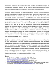 Durchsetzung der Gesetze über sexuelle und häusliche Gewalt ist unzureichend und liegt oft im Ermessen der zuständigen Behörden, so die Experten für geschlechtsspezifische Gewalt. Ungerechtfertigte Ablehnungen von Anklagen sind angeblich üblich (USDOS 20.3.2023). Das Gesetz definiert Femizid als das Verbrechen der Tötung einer Frau oder eines Mädchens aufgrund von Erwartungen, Annahmen oder Faktoren, die für ihr Geschlecht charakteristisch sind. Das Mindeststrafmaß für Femizid beträgt in der Regel 20 Jahre bzw. 30 Jahre, wenn erschwerende Umstände hinzukommen (z.B. bei Verbrechen gegen ein Kind, ältere Menschen oder ein schwangeres Opfer). Die polizeilichen Maßnahmen zur Durchsetzung des Gesetzes sind schwach und langsam, die Verfolgung der Fälle oft langwierig und unwirksam (USDOS 20.3.2023). Geschlechtsspezifische Gewalt ist in Peru weit verbreitet (FH 2023) und ein signifikantes Problem (HRW 12.1.2023). Mehr als die Hälfte der peruanischen Frauen berichten von körperlicher, sexueller oder emotionaler Gewalt. Im Jahr 2022 wurden mehr als 135 Femizide registriert (FH 2023), im Jahr 2021 waren es 136 (HRW 12.1.2023). Im Laufe des Jahres 2022 begann das Büro des Ombudsmannes, Fälle von vermissten Frauen und Mädchen in monatlichen Berichten zu erfassen. Bis September 2022 meldete das Büro des Ombudsmannes 3.528 Fälle von Frauen, die zwischen Januar und September 2022 vermisst und nicht gefunden wurden, ein Anstieg von 22 % im Vergleich zu den ersten neun Monaten des Jahres 2021. Von den Vermissten waren 68 % junge Mädchen und Teenager (USDOS 20.3.2023). Das Gesetz verbietet häusliche Gewalt; die Strafen reichen im Allgemeinen von einem Monat bis zu sechs Jahren Gefängnis. Das Gesetz ermächtigt Richter und Staatsanwälte, einen verurteilten Ehepartner oder Elternteil daran zu hindern, zur Familie zurückzukehren. Das Gesetz ermächtigt auch die Verwandten des Opfers und nicht verwandte Personen, die in der Wohnung leben, Anzeige wegen häuslicher Gewalt zu erstatten. Das Gesetz schreibt vor, dass innerhalb von fünf Tagen nach einer Anzeige eine polizeiliche Untersuchung wegen häuslicher Gewalt durchgeführt werden muss, und verpflichtet die Behörden, weiblichen Opfern häuslicher Gewalt Schutz zu gewähren. Laut NGOs, die sich auf die Bekämpfung geschlechtsspezifischer Gewalt spezialisiert haben, wurde das Gesetz nur lax durchgesetzt (USDOS 20.3.2023). Quellen: - FH - Freedom House (2023): Freedom in the World 2023 - Peru, https://www.ecoi.net/de/dokument/2088548.html, Zugriff 25.9.2023 - HRW - Human Rights Watch (12.1.2023): World Report 2023 – Peru, https://www.ecoi.net/de/dokument/2085486.html, Zugriff 3.10.2023 -USDOS - U.S: Department of State [USA] (20.3.2023): 2022 Country Report on Human Rights Practices: Peru, https://www.ecoi.net/de/dokument/2089223.html, Zugriff 25.9.2023 .BFA Bundesamt für Fremdenwesen und Asyl Seite 17 von 24