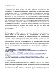2. Politische Lage Die Philippinen haben ca. 300.000 km² Fläche und ca. 107 Mio. Einwohner. Die primären Landessprachen sind Pilipino (Tagalog) und Englisch (allgemeine Verkehrssprache). Die Regierungsform des Landes ist ein Präsidialsystem, Staatsoberhaupt und Regierungschef ist seit Juni 2016 Rodrigo Duterte (AA 6.3.2019a). Das philippinische Präsidialsystem folgt weitgehend dem US-amerikanischen Vorbild mit zwei Kammern, dem Repräsentantenhaus mit etwa 290 Abgeordneten und einem 24-köpfigen Senat. Die Kongressabgeordneten werden alle drei Jahre gewählt, während die Amtszeit von Senatoren sechs Jahre beträgt, wobei jeweils die Hälfte von ihnen nach drei Jahren gewählt wird. Der mit großen Befugnissen ausgestattete Präsident an der Spitze der Exekutive ist gleichzeitig in Personalunion Staatsoberhaupt, Regierungschef und Oberbefehlshaber der Streitkräfte. Er ernennt die Mitglieder des Kabinetts und hat ein Vetorecht bei Gesetzesbeschlüssen des Kongresses. Seine Amtszeit endet nach sechs Jahren, eine Wiederwahl ist nicht möglich. Die Legislative besteht aus dem Repräsentantenhaus und dem Senat (GIZ 3.2019a). Die Regierung des am 9.5.2016 gewählten und seit dem 30.6.2016 regierenden Präsidenten Rodrigo Duterte hat die Bekämpfung der Drogenkriminalität, die Armuts- und Korruptionsbekämpfung, die Befriedung der inneren muslimischen und kommunistischen Rebellionen und einen föderalen Umbau des Staates zu den wichtigsten Prioritäten ihrer Politik erklärt. Zivilgesellschaftliche Organisationen beklagen eine deutlich verschlechterte Menschenrechtslage im Zuge der Anti-Drogen-Kampagne, bei der seit Amtsantritt Dutertes nach offiziellen Zahlen über 5.000 Personen getötet worden sind. Nach NGO-Angaben ist die Zahl der durch die Polizei oder Unbekannte Getöteten deutlich höher (12.000 bis 20.000) (AA 6.3.2019b). Quellen: - AA - Auswärtiges Amt (6.3.2019a): Philippinen - Überblick, https://www.auswaertiges-amt.de/de/aussenpolitik/laender/philippinen-node/philippinen/212478, Zugriff 22.5.2019 - AA - Auswärtiges Amt (6.3.2019b): Philippinen, Innenpolitik, https://www.auswaertiges-amt.de/de/aussenpolitik/laender/philippinen-node/-/212526, Zugriff 22.5.2019 - GIZ - Deutsche Gesellschaft für Internationale Zusammenarbeit (3.2019a): Philippinen, Geschichte, Staat und Politik, http://liportal.giz.de/philippinen/geschichte-staat/, Zugriff 22.5.2019 3. Sicherheitslage Seit der Unabhängigkeit der Republik der Philippinen am 4.7.1946 existiert eine Reihe virulenter politischer, wirtschaftlicher und sozialer Konflikte, die bis heute von sämtlichen Regierungen gar nicht oder nur teilweise gelöst werden konnten. Es gibt eine Reihe kommunistischer und muslimischer Gruppen, die – mitunter auch bewaffnet – gegen die Zentralregierung und für .BFA Bundesamt für Fremdenwesen und Asyl Seite 8 von 23