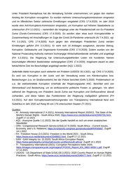 Unter Präsident Ramaphosa hat die Verwaltung Schritte unternommen, um gegen den starken Anstieg der Korruption vorzugehen. Es wurden mehrere Untersuchungskommissionen eingesetzt und im öffentlichen Sektor zahlreiche Ermittlungen eingeleitet (CRS 17.9.2020). Im Jahr 2018 wurde eine Anti-Korruptions-Kommission eingesetzt, um Korruption auf höherer Staatsebene zu untersuchen (FH 3.3.2021) – namentlich die Vorgänge unter der Präsidentschaft von Ex-Präsident Zuma (Zondo-Commission) (CRS 17.9.2020). Es werden aber etwa auch Korruptionsfälle in Zusammenhang mit Anschaffungen im Zuge der Covid-19-Pandemie untersucht (AI 7.4.2021; vgl. FH 3.3.2021, CRS 17.9.2020). Auch gegen den ehemaligen Präsidenten Zuma werden Ermittlungen geführt (FH 3.3.2021). Er sieht sich 16 Anklagen ausgesetzt, darunter Betrug, Korruption, Geldwäsche und Organisierte Kriminalität (CRS 17.9.2020). Zudem wurden von der National Prosecuting Authority mehrere hochrangige Wirtschaftstreibende verhaftet und angeklagt (FH 3.3.2021). Die Regierung hat Untersuchungsbehörden Listen mit hunderten Namen beschuldigter öffentlich Bediensteter weitergegeben (CRS 17.9.2020). Insgesamt dauert es aber beträchtliche Zeit, bis Beschuldigte angeklagt werden (AQ1 1.2022). Jedenfalls bleibt Korruption auch weiterhin ein Problem (USDOS 30.3.2021; vgl. CRS 17.9.2020). Es wird von Korruption in der Justiz und der Verwaltung sowie von Kleinkorruption bzw. Bestechungen (v.a. im Straßenverkehr) bei der Polizei berichtet (GAN 5.2020). Problematisch ist u.a. die weitverbreitete Korruption innerhalb der Regierungspartei ANC. Berichtet wird von Stimmenkauf und Bestechung, um an einflussreiche politische Posten zu gelangen. Vor allem während der Regierung von Präsident Jacob Zuma war Korruption und Einflussnahme überall vorhanden, und diese haben das Funktionieren der Regierung maßgeblich gehemmt (FH 3.3.2021). Auf dem Korruptionswahrnehmungsindex von Transparency International fand sich Südafrika im Jahr 2020 auf Rang 69 von 179 untersuchten Staaten (TI 2021). Quellen: - AI - Amnesty International (7.4.2021): Amnesty International Report 2020/21, The State of the World's Human Rights - South Africa 2020, https://www.ecoi.net/de/dokument/2048756.html, Zugriff 17.12.2021 - AQ1 - Anonyme Quelle 1 (1.2022): Bei der Quelle handelt es sich um einen analytischen Newsletter - CRS - Congressional Research Service [USA] (17.9.2020): South Africa – Current Issues, Economy, and U.S. Relations, https://crsreports.congress.gov/product/pdf/R/R45687, Zugriff 14.1.2022 - FH - Freedom House (3.3.2021): Freedom in the World 2021 - South Africa, https://www.ecoi.net/de/dokument/2048602.html, Zugriff 17.12.2021 - GAN - GAN Integrity Inc. (5.2020): South Africa Corruption Report, https://www.ganintegrity.com/portal/country-profiles/south-africa/, Zugriff 14.1.2022 - TI - Transparency International (2021): Corruption Perceptions Index 2020, https://images.transparencycdn.org/images/CPI2020_Report_EN_0802-WEB-1.pdf, Zugriff 17.12.2021 - USDOS - US Department of State [USA] (30.3.2021): 2020 Country Report on Human Rights Practices - South Africa, https://www.ecoi.net/de/dokument/2048477.html, Zugriff 17.12.2021 .BFA Bundesamt für Fremdenwesen und Asyl Seite 14 von 31