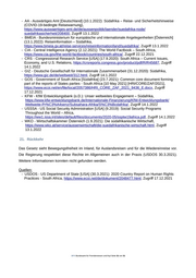 - AA - Auswärtiges Amt [Deutschland] (10.1.2022): Südafrika – Reise- und Sicherheitshinweise (COVID-19-bedingte Reisewarnung), https://www.auswaertiges-amt.de/de/aussenpolitik/laender/suedafrika-node/ suedafrikasicherheit/208400, Zugriff 13.1.2022 - BMEIA - Bundesministerium für europäische und internationale Angelegenheiten [Österreich] (13.1.2022): Reiseinformation – Südafrika, https://www.bmeia.gv.at/reise-services/reiseinformation/land/suedafrika/, Zugriff 13.1.2022 - CIA - Central Intelligence Agency (2.12.2021): The World Factbook – South Africa, https://www.cia.gov/the-world-factbook/countries/south-africa/, Zugriff 22.12.2021 - CRS - Congressional Research Service [USA] (17.9.2020): South Africa – Current Issues, Economy, and U.S. Relations, https://crsreports.congress.gov/product/pdf/R/R45687, Zugriff 14.1.2022 - GIZ - Deutsche Gesellschaft für Internationale Zusammenarbeit (31.12.2020): Südafrika, https://www.giz.de/de/weltweit/312.html, Zugriff 14.1.2022 - GOS - Government of South Africa [Südafrika] (23.7.2021): Common core document forming part of the reports of States parties - South Africa [10 May 2021] [HRI/CORE/ZAF/2021], https://www.ecoi.net/en/file/local/2057386/HRI_CORE_ZAF_2021_9436_E.docx, Zugriff 17.12.2021 - KFW - KfW Entwicklungsbank (o.D.): Unser weltweites Engagement – Südafrika, https://www.kfw-entwicklungsbank.de/Internationale-Finanzierung/KfW-Entwicklungsbank/ Weltweite-Pr%C3%A4senz/Subsahara-Afrika/S%C3%Bcdafrika/, Zugriff 14.1.2022 - USSSA - US Social Security Administration [USA] (9.2019): Social Security Programs Throughout the World – Africa, https://ww1.issa.int/sites/default/files/documents/2020-05/ssptw19africa.pdf, Zugriff 14.1.2022 - WKO - Wirtschaftskammer Österreich (1.9.2021): Die südafrikanische Wirtschaft, https://www.wko.at/service/aussenwirtschaft/die-suedafrikanische-wirtschaft.html, Zugriff 13.1.2022 21. Rückkehr Das Gesetz sieht Bewegungsfreiheit im Inland, für Auslandsreisen und für die Wiedereinreise vor. Die Regierung respektiert diese Rechte im Allgemeinen auch in der Praxis (USDOS 30.3.2021). Weitere Informationen konnten nicht gefunden werden. Quellen: - USDOS - US Department of State [USA] (30.3.2021): 2020 Country Report on Human Rights Practices - South Africa, https://www.ecoi.net/de/dokument/2048477.html, Zugriff 17.12.2021 .BFA Bundesamt für Fremdenwesen und Asyl Seite 31 von 31