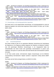 - BAMF – Bundesamt für Migration und Flüchtlinge [Deutschland] (1.2024): Länderreport 65, Saudi Arabien, https://www.ecoi.net/en/file/local/2104658/laenderreport-65-Saudi-Arabien.pdf, Zugriff 23.4.2024 - FH – Freedom House (2024): Freedom in the World 2024 - Saudi Arabia, https://www.ecoi.net/de/dokument/2108065.html; Zugriff 22.4.2025 - HRW – Human Rights Watch (16.1.2025): World Report 2025 - Saudi Arabia, https://www.ecoi.net/de/dokument/2120113.html, Zugriff 18.4.2025 - RSF – Reporter ohne Grenzen (2024): Rangliste der Pressefreiheit 2024, Saudi Arabien, - USCIRF - US Commission on International Religious Freedom [USA] (5.2024): Saudi Arabia, Annual Report 2024, https://www.ecoi.net/en/file/local/2112012/Saudi+Arabia.pdf, Zugriff 18.4.2025 - USDOS – US Department of State [USA] (23.4.2024): 2023 Country Report on Human Rights Practices: Saudi Arabia, https://www.ecoi.net/de/dokument/2107728.html, Zugriff 17.4.2025 12. Versammlungs- und Vereinigungsfreiheit, Opposition Das Gesetz sieht nur sehr eingeschränkte Versammlungs- und Vereinigungsfreiheit vor, aber die Regierung respektiert nicht einmal diese begrenzten Rechte (USDOS 23.4.2024; vgl. FH 2024, BAMF 1.2024). Quellen: - BAMF – Bundesamt für Migration und Flüchtlinge [Deutschland] (1.2024): Länderreport 65, Saudi Arabien, https://www.ecoi.net/en/file/local/2104658/laenderreport-65-Saudi-Arabien.pdf, Zugriff 22.4.2024 - FH – Freedom House (2024): Freedom in the World 2024 - Saudi Arabia, https://www.ecoi.net/de/dokument/2108065.html; Zugriff 22.4.2025 - USDOS – US Department of State [USA] (23.4.2024): 2023 Country Report on Human Rights Practices: Saudi Arabia, https://www.ecoi.net/de/dokument/2107728.html, Zugriff 17.4.2025 12.1. Versammlungsfreiheit Das Gesetz schreibt für jede Art von organisierter öffentlicher Versammlung eine Genehmigung der Regierung vor. Die Regierung verbietet kategorisch die Teilnahme an politischen Protesten oder nicht genehmigten öffentlichen Versammlungen. In der Vergangenheit hatten die Sicherheitskräfte eine kleine Anzahl nicht genehmigter Demonstrationen im ganzen Land zugelassen, doch gab es im Laufe des Jahres 2023 keine Berichte über Demonstrationen (USDOS 23.4.2024). In der Praxis werden private, nicht-islamische religiöse Versammlungen und die öffentliche Zurschaustellung nicht-islamischer religiöser Symbole in begrenztem Umfang toleriert (BAMF 1.2024). Das Gesetz sah kein Recht auf legale Streiks vor (USDOS 23.4.2024). Quellen: - BAMF – Bundesamt für Migration und Flüchtlinge [Deutschland] (1.2024): Länderreport 65, Saudi Arabien, https://www.ecoi.net/en/file/local/2104658/laenderreport-65-Saudi-Arabien.pdf, Zugriff 23.4.2024 - USDOS – US Department of State [USA] (23.4.2024): 2023 Country Report on Human Rights Practices: Saudi Arabia, https://www.ecoi.net/de/dokument/2107728.html, Zugriff 17.4.2025 .BFA Bundesamt für Fremdenwesen und Asyl Seite 22 von 42