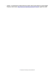 - USDOS - US Department of State [USA] (23.4.2024): 2023 Country Report on Human Rights Practices, Sierra Leone, https://www.ecoi.net/en/document/2107719.html, Zugriff 19.2.2025 .BFA Bundesamt für Fremdenwesen und Asyl Seite 29 von 29