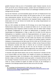 gewählte Paramount Chiefs aus den 14 Provinzdistrikten (außer Freetown) reserviert. Nur die SLPP und die APC sind im Parlament vertreten, nachdem 2022 eine Eintrittshürde von 11,9 % eingeführt wurde, die die Chancen kleinerer Parteien und unabhängiger Kandidaten auf einen Sitz verringert hat (FH 25.4.2024). Auch bei den Parlaments- und Kommunalwahlen gewann die SLPP von Präsident Bio 60 % der 135 Sitze und ist damit mit 81 Sitzen vertreten. Der APC gewann 54 Sitze, d.h. 40 %, und verlor seine parlamentarische Mehrheit. Die SLPP konnte im Distrikt Kono und im oppositionellen Kernland im Norden und Westen, insbesondere in der Hauptstadt Freetown, zulegen. Der APC behielt jedoch mit 51 % der Stimmen die Kontrolle über das wichtige Bürgermeisteramt von Freetown (KAS 10.7.2023). Mitte Juni 2023 verhafteten die Behörden 35 APC-Anhänger, die an einem Protest gegen die Wahlkommission teilgenommen hatten, am Vorabend der Wahlen vom 24. Juni wurden sie ohne Anklageerhebung wieder freigelassen (USDOS 23.4.2024). Nach den Wahlen hielten Anhänger der Opposition Kundgebungen ab, um gegen die Wahlkommission zu protestieren und die Glaubwürdigkeit der Wahlergebnisse in Frage zu stellen (FH 25.4.2024). Die APC lehnte die Wahlergebnisse ab, boykottierte zunächst die Regierungsinstitutionen und weigerte sich aus Protest, ihre Parlamentssitze einzunehmen, um gegen die, nach Ansicht der Partei, gefälschten Wahlen zu protestieren (FH 25.4.2024). Der Streit endete nach Abschluss eines international vermittelten Abkommens im Oktober, das unter anderem die Einstellung jeglicher juristischen Verfolgung im Zusammenhang mit der Wahl vorsah (TAZ 26.11.2023; vgl. FH 25.4.2024), und um die Zusammenarbeit zwischen den politischen Parteien zu fördern und den Prozess der Reform des Wahlsystems einzuleiten (BS 2024). Im Rahmen des am 18.10.2023 unterzeichneten Abkommens zur nationalen Einheit legte die APC eine Liste der Personen vor, die wegen angeblicher Wahlverstöße oder anderer Proteste festgenommen oder inhaftiert worden sind und von der Regierung freigelassen werden sollten (USDOS 23.4.2024; vgl. FH 23.4.2024) Im November 2023 gaben Beamte bekannt, dass sie einen „Putschversuch“ verhindert und mehr als ein Dutzend Militärs und einen Zivilisten nach Angriffen auf Kasernen und Gefängnisse in Freetown festgenommen hätten. Die Ermittlungen zu dem mutmaßlichen Putschversuch haben Berichten zufolge zu erhöhten politischen Spannungen geführt. Im Dezember 2023 lud die Polizei den ehemaligen Präsidenten Ernest Bai Koroma zu einer Befragung im Zusammenhang mit dem Vorfall vor. Koroma verurteilte die Angriffe und erklärte sich bereit, bei den Ermittlungen zu kooperieren. Die Ermittlungen dauerten Ende des Jahres noch an (FH 25.4.2024). Quellen: - AA - Auswärtiges Amt [Deutschland] (23.1.2025): Sierra Leone: Reise- und Sicherheitshinweise, https://www.auswaertiges-amt.de/de/service/laender/sierraleone-node/ sierraleonesicherheit-203500, Zugriff 19.2.2025 .BFA Bundesamt für Fremdenwesen und Asyl Seite 7 von 29
