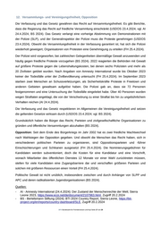 12. Versammlungs- und Vereinigungsfreiheit, Opposition Die Verfassung und das Gesetz gewähren das Recht auf Versammlungsfreiheit. Es gibt Berichte, dass die Regierung das Recht auf friedliche Versammlung einschränkt (USDOS 23.4.2024; vgl. AI 24.4.2024, BS 2024). Das Gesetz verlangt eine vorherige Abstimmung von Demonstrationen mit der Polizei (SLP), und der Generalinspektor der Polizei muss die Proteste genehmigen (USDOS 23.4.2024). Obwohl die Versammlungsfreiheit in der Verfassung garantiert ist, hat sich die Polizei wiederholt geweigert, Organisatoren von Protesten eine Genehmigung zu erteilen (FH 25.4.2024). Der Polizei wird vorgeworfen, bei zahlreichen Gelegenheiten übermäßige Gewalt anzuwenden und häufig gegen friedliche Proteste vorzugehen (BS 2024). 2022 reagierten die Behörden mit Gewalt auf größere Proteste gegen die Lebenshaltungskosten, bei denen sechs Polizisten und mehr als 20 Zivilisten getötet wurden. Nach Angaben von Amnesty International wurde bis Oktober 2023 keiner der Todesfälle unter der Zivilbevölkerung untersucht (FH 25.4.2024). Im September 2023 starben zwei Menschen an Schussverletzungen, als Sicherheitskräfte Proteste in Freetown und anderen Gebieten gewaltsam aufgelöst haben. Die Polizei gab an, dass sie 72 Personen festgenommen und eine Untersuchung der Todesfälle eingeleitet habe. Über 40 Personen wurden wegen Straftaten angeklagt, die von der Verschwörung zu einer Straftat bis hin zu ungebührlichem Verhalten reichen (AI 24.4.2024). Die Verfassung und das Gesetz respektieren im Allgemeinen die Vereinigungsfreiheit und setzen die geltenden Gesetze wirksam durch (USDOS 23.4.2024; vgl. BS 2024). Grundsätzlich haben die Bürger das Recht, Parteien und zivilgesellschaftliche Organisationen zu gründen und öffentliche Versammlungen abzuhalten (BS 2024). Opposition: Seit dem Ende des Bürgerkriegs im Jahr 2002 hat es zwei friedliche Machtwechsel nach Wahlsiegen der Opposition gegeben. Und obwohl die Menschen das Recht haben, sich in verschiedenen politischen Parteien zu organisieren, sind Oppositionsparteien und -führer Einschüchterungen und Schikanen ausgesetzt (FH 25.4.2024). Die Nominierungsgebühren für Kandidaten werden subventioniert, doch die Kosten für eine Kandidatur und eine Vorschrift, wonach Mitarbeiter des öffentlichen Dienstes 12 Monate vor einer Wahl zurücktreten müssen, stellen für viele Kandidaten eine Zugangsbarriere dar und verschaffen größeren Parteien und solchen mit größeren Ressourcen einen Vorteil (FH 25.4.2024). Politische Gewalt ist nicht unüblich, insbesondere zwischen und durch Anhänger von SLPP und APC und deren radikalisierten Jugendorganisationen (BS 2024). Quellen: - AI - Amnesty International (24.4.2024): Der Zustand der Menschenrechte der Welt; Sierra Leone 2023, https://www.ecoi.net/de/document/2107963.html, Zugriff 20.2.2024 - BS - Bertelsmann Stiftung (2024): BTI 2024 Country Report, Sierra Leone, https://bti- project.org/en/reports/country-dashboard/SLE, Zugriff 20.2.2024 .BFA Bundesamt für Fremdenwesen und Asyl Seite 17 von 29