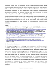 umstrittenen Gebiets Abyei zu unternehmen und mit UNISFA zusammenzuarbeiten (BAMF 17.5.2021). Medien berichteten, dass seit dem 13. Juni 2021 zwischen dem Sudan und dem Südsudan Gespräche über den teils umstrittenen Grenzverlauf zwischen beiden Staaten aufgenommen worden sind. Die dafür gebildete Joint Border Commission spricht von einem grundsätzlichen Austausch der jeweiligen Ansichten über den Grenzverlauf und darauf aufbauende, positiv verlaufende, Gespräche (BAMF 21.6.2021). Im Rahmen des sudanesischen Konflikts in den Regionen Darfur, Südkordofan und Blauer Nil hat die südsudanesische Regierung immer wieder vermittelt. In der Folge wurde im August 2020 zwischen der Übergangsregierung des Sudan und der Revolutionären Front – einem Bündnis mehrerer Rebellengruppen – in Juba, Südsudan, ein Friedensabkommen unterzeichnet (DW 31.8.2020). Quellen: - BAMF - Bundesamt für Migration und Flüchtlinge [Deutschland] (21.6.2021): Briefing Notes, Sudan / Südsudan, Gespräche über umstrittenen Grenzverlauf: https://www.bamf.de/SharedDocs/Anlagen/DE/Behoerde/Informationszentrum/BriefingNotes/ 2021/briefingnotes-kw25-2021.pdf?__blob=publicationFile&v=2 , Zugriff 9.7.2021 - BAMF - Bundesamt für Migration und Flüchtlinge [Deutschland] (17.5.2021): Briefing Notes, Sudan/Südsudan: UN-Sicherheitsrat verlängert UNISFA-Mandat, https://www.bamf.de/SharedDocs/Anlagen/DE/Behoerde/Informationszentrum/BriefingNotes/ 2021/briefingnotes-kw20-2021.pdf?__blob=publicationFile&v=2, Zugriff 9.7.2021 - CIA - Country Intelligence Agency (7.7.2021) [USA]: The World Factbook – South Sudan, https://www.cia.gov/the-world-factbook/countries/south-sudan/#people-and-society, Zugriff 7.7.2021 - DW - Deutsche Welle (31.8.2020): Friedensabkommen für Sudan unterzeichnet, https://www.dw.com/de/friedensabkommen-f%C3%Bcr-sudan-unterzeichnet/a-54772426, Zugriff 14.5.2021 5. Rechtsschutz / Justizwesen Die Übergangverfassung sieht eine unabhängige Justiz vor und erkennt auch Gewohnheitsrecht an (USDOS 30.3.2021). Das südsudanesische Justizsystem ist ausgesprochen schwach. Das gesamte Land verfügt nur über rund 180 ausgebildete Richter. Neben dem formellen Gesetz bestehen viele traditionelle Rechtsregelungen sowie ein Case Law britischer Prägung. Vor allem auf dem Land spielen die traditionelle Rechtsprechung der „Chiefs“ und das Gewohnheitsrecht weiter eine wichtige Rolle. Das Justizgesetz von 2008 wiederum sieht die Einrichtung von Gerichten auf Bundes-, Landes- und Bezirksebene (County) vor; unterhalb der Landesebene existieren aber nur wenige Gerichte; hier dominiert die traditionelle Gerichtsbarkeit der Chiefs, die nach Angaben der Regierung rund 80 Prozent aller Fälle „regeln“. Das R-ARCSS (Revitalized Agreement on the Resolution of the Conflict in South Sudan) sieht die Einführung einer Übergangsgerichtsbarkeit vor. UNMISS unterstützt den Aufbau von mobilen Gerichten (AA 25.3.2021). .BFA Bundesamt für Fremdenwesen und Asyl Seite 11 von 25