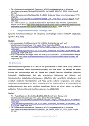 - ÖB – Österreichische Botschaft [Österreich] (9.2020): Asylländerbericht zu Sri Lanka, https://www.ecoi.net/en/file/local/2052066/SRIL_%C3%96B_BERICHT_2020_09.pdf, Zugriff 7.7.2021 - SFH – Schweizerische Flüchtlingshilfe (8.5.2020): Sri Lanka: Witwe eines hochrangigen LTTE- Mitglieds, https://www.ecoi.net/en/file/local/2030985/200508_LKA_LTTE_Witwe_anonym_01.pdf, Zugriff 10.6.2021 - TG – The Guardian (12.2.2018): Australia issues deportation order for Tamil asylum seeker despite torture fears, https://www.theguardian.com/australia-news/2018/feb/13/australia-issues- deportation-order-for-tamil-asylum-seeker-despite-torture-fears, Zugriff 10.6.2021 23.1. Unbegleitete Minderjährige Flüchtlinge (UMF) Spezielle Aufnahmeeinrichtungen für unbegleitete Minderjährige bestehen nicht (AA 18.21.2020; vgl. DFAT 4.11.2019). Quellen: - AA – Auswärtiges Amt [Deutschland] (18.12.2020): Bericht über die asyl- und abschiebungsrelevante Lage in Sri Lanka (Stand: November 2020), https://www.ecoi.net/en/file/local/2042798/Ausw%C3%A4rtiges_Amt%2C_Bericht_%C3%BCbe r_die_asyl- _und_abschiebungsrelevante_Lage_in_Sri_Lanka_%28Stand_November_2020%29%2C_18.1 2.2020.pdf, Zugriff 10.6.2021 - DFAT – Department of Foreign Affairs and Trade (4.11.2019): DFAT Country Information Report Sri Lanka, https://www.ecoi.net/en/file/local/2019380/country-information-report-sri-lanka.pdf, Zugriff 10.6.2021 24. Dokumente Dokumentenfälschungen sind in Sri Lanka in sehr guter Qualität zu finden (ÖB 9.2020). Öffentliche Urkunden unwahren Inhalts (Falschbeurkundungen) sind sehr selten. Bei weniger als einem Prozent der Visumsanträge wird die Vorlage von inhaltlich falschen öffentlichen Urkunden festgestellt. Totalfälschungen fast aller sri-lankischen Dokumente wie Geburts- und Heiratsurkunden, Ledigkeitsbescheinigungen, Haftbefehle oder gerichtliche Vorladungen sind erhältlich. Gefälschte Identitätskarten und Pässe werden seltener vorgebracht, eine Vorlage verfälschter Identitätskarten und Pässe kommt häufiger vor. Insbesondere im Zusammenhang mit Asylbeantragungen aber auch regulären Visaanträgen kommt es immer wieder zur Vorlage gefälschter Polizeiberichte und Gerichtsvorladungen (AA 18.12.2020). Quellen: - AA – Auswärtiges Amt [Deutschland] (18.12.2020): Bericht über die asyl- und abschiebungsrelevante Lage in Sri Lanka (Stand: November 2020), https://www.ecoi.net/en/file/local/2042798/Ausw%C3%A4rtiges_Amt%2C_Bericht_%C3%BCbe r_die_asyl- _und_abschiebungsrelevante_Lage_in_Sri_Lanka_%28Stand_November_2020%29%2C_18.1 2.2020.pdf, Zugriff 10.6.2021 - ÖB – Österreichische Botschaft [Österreich] (9.2020): Asylländerbericht zu Sri Lanka, https://www.ecoi.net/en/file/local/2052066/SRIL_%C3%96B_BERICHT_2020_09.pdf, Zugriff 7.7.2021 .BFA Bundesamt für Fremdenwesen und Asyl Seite 57 von 57