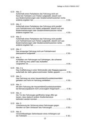 Beilage zu RU6-A-766/041-2017 12 § 23 Abs. 2 Außerhalb eines Parkplatzes das Fahrzeug nicht am Rand der Fahrbahn zum Parken aufgestellt, obwohl sich aus Bodenmarkierungen oder St raßenverkehrszeichen nichts anderes ergeben hat ................................................................. € 30,-- § 23 Abs. 2 Außerhalb eines Parkplatzes das Fahrzeug nicht parallel zum Fahrbahnrand zum Halten aufgestellt, obwohl sich aus Bodenmarkierungen oder Straß enverkehrszeichen nichts anderes ergeben hat ............... .................................................. € 30,-- § 23 Abs. 2 Außerhalb eines Parkplatzes das Fahrzeug nicht parallel zum Fahrbahnrand zum Parken aufgestellt, obwohl sich aus Bodenmarkierungen oder Straßenverkehrszeichen nichts anderes ergeben hat ................................................................. € 30,-- § 23 Abs. 2 Das einspurige Fahrzeug nicht am Fahrbahnrand platzsparend aufgestellt ...... ...................................................... € 30,-- § 23 Abs. 2 Aufstellen von Fahrzeugen auf Gehsteigen, die schwerer als 3.500 kg sind, sofern das Aufstellen vorgesehen ist......... ....................................................................€ 30,-- § 23 Abs. 2 a Das Kraftfahrzeug in einer Wohnstraße oder Begegnungszone außerhalb der dafür gekennzeichneten St ellen geparkt ............ € 30,-- § 23 Abs. 3 Das Fahrzeug vor einer Hauseinfahrt/Grundstückseinfahrt gehalten und nicht im Fahrzeug verblieb en .............................. € 30,-- § 23 Abs. 3 Mit dem Fahrzeug die Haus einfahrt/Grundstückseinfahrt bei Benützungsabsicht nicht unverzüglic h freigemacht ............. € 30,-- § 23 Abs. 4 Die Tür des Fahrzeuges geöffnet/so lange offen ge- lassen, dass dadurch andere Straßenbenützer behindert werden konnten ..... .................................................... € 30,-- § 23 Abs. 5 Unterlassung der Sicherung eines Fahrzeuges gegen Abrollen vor dem Verlassen des Fahrz euges ........................... € 30,-- § 23 Abs. 6 Vorschriftswidriges Stehenlassen eines Anhängers auf der Fahrbahn .................. .......................................................... € 30,--