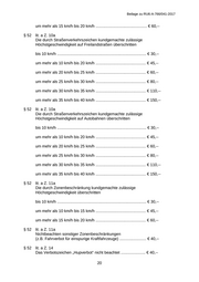 Beilage zu RU6-A-766/041-2017 20 um mehr als 15 km/h bis 20 km/h .............................................. € 60,-- § 52 lit. a Z. 10a Die durch Straßenverkehrsze ichen kundgemachte zulässige Höchstgeschwindigkeit auf Freilandstraßen überschritten bis 10 km/h ................................................................................ € 30,-- um mehr als 10 km/h bis 20 km/h ............................................. € 45,-- um mehr als 20 km/h bis 25 km/h ............................................. € 60,-- um mehr als 25 km/h bis 30 km/h ............................................. € 80,-- um mehr als 30 km/h bis 35 km/h ......... .................................... € 110,-- um mehr als 35 km/h bis 40 km/h ............................................. € 150,-- § 52 lit. a Z. 10a Die durch Straßenverkehrsze ichen kundgemachte zulässige Höchstgeschwindigkeit auf Autobahnen überschritten bis 10 km/h ......... ....................................................................... € 30,-- um mehr als 10 km/h bis 20 km/h ............................................. € 45,-- um mehr als 20 km/h bis 25 km/h ............................................. € 60,-- um mehr als 25 km/h bis 30 km/h ............................................. € 80,-- um mehr als 30 km/h bis 35 km/h ............................................. € 110,-- um mehr als 35 km/h bis 40 km/h ............................................. € 150,-- § 52 lit. a Z. 11a Die durch Zonenbeschränkung kundgemachte zulässige Höchstgeschwindigkeit überschritten bis 10 km/h ................................................................................ € 30,-- um mehr als 10 km/h bis 15 km/h ......... .................................... € 45,-- um mehr als 15 km/h bis 20 km/h ............................................. € 60,-- § 52 lit. a Z. 11a Nichtbeachten sonstiger Zonenbeschränkungen (z.B. Fahrverbot für einspurige Kraftf ahrzeuge) ........................ € 40,-- § 52 lit. a Z. 14 Das Verbotszeichen „Hupverbot“ nicht beac htet ...................... € 40,--