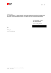 Seite 2/3 Sofern sich die von Ihnen begehrte Information auf eine konkrete Verkehrslichtsignalanlage bezieht, wird gemäß § 7 Abs. 2 zweiter Satz IFG aufgetragen zu konkretisieren. Aggregierte und unkritische Informationen können nach Konkretisierung der Anfrage ggf. bereitgestellt werden, technische Detailparameter jedoch aufgrund der gesetzlich normierten Geheimhaltungsgründe wie eingangs erwähnt nicht. Generell kann Ihnen zu den Umlaufzeiten folgendes mitgeteilt werden: Die Umlaufzeit ist die Summe aller Signalphasen einer Ampel (Grün, Gelb, Rot) über alle Verkehrsströme hinweg, bis der Ablauf wieder von vorne beginnt. Beispiel: Wenn eine Kreuzung eine Umlaufzeit von 80 Sekunden hat, bedeutet das, dass nach 80 Sekunden wieder dieselbe Verkehrsrichtung Grün bekommt wie zu Beginn. Die Wiener Ampeln weisen aber auch verschiedenste Umlaufzeiten auf. Diese liegen zwischen 40 und 150 Sekunden. Je nach der Lage und Verkehrsdichte. So hat z.B. die Ampel Klosterneuburger Straße # Leipziger Straße während der Nachtstunden eine Umlaufzeit von 40 Sekunden und die Anlage Landstraßer Gürtel # Ghegastraße eine maximale Umlaufzeit von 150 Sekunden. An den Wiener Ampeln kommen Umlaufzeiten von 40, 50, 60, 75, 100, 120 und 150 Sekunden vor. Hinzu kommt noch, dass die Umlaufzeiten von verschiedenen Verkehrsteilnehmer*innen beeinflusst werden können. Dies können Fußgänger*innen, Radfahrer*innen, der öffentliche Personennahverkehr aber auch erhöhtes Verkehrsaufkommen sein. Ebenso hängen die Umlaufzeiten vom jeweiligen Wochentag aber auch der Uhrzeit ab. Gesetzliche Grundlagen: Straßenverkehrsordnung 1960 (StVO) § 38 StVO – Bedeutung der Lichtzeichen Regelt, welche Signalbilder (Rot, Gelb, Grün) es gibt, was sie bedeuten und wie sie anzuwenden sind. Technische Richtlinien und Vorschriften: RVS 05.05.42 – Lichtsignalanlagen (Ausgabe 2021) (herausgegeben von der Forschungsgesellschaft Straße – Schiene – Verkehr, FSV) → Zentrale technische Grundlage für Planung und Betrieb von Ampeln in Österreich. Die RVS schreibt vor, wie Umlaufzeiten zu wählen und abzustimmen sind – etwa im Hinblick auf Verkehrsbelastung, Koordination (Grüne Welle) und Sicherheit. Verkehrsanbindung: Linien 6, 69 A, Station Geiereckstraße (Gräßlplatz) SF-33098 – 032025 – QM00