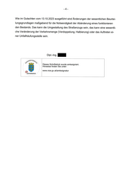 Wie im Gutachten vom 13.10.2023 ausgeführt sind Änderungen der wesentlichen Beurtei- lungsgrundlagen maßgebend für die Notwendigkeit der Abänderung eines funktionieren den Bestands. Das kann die Umgestaltung des Straßenzugs sein, das kann eine wesentli- che Veränderung der Verkehrsmenge (Verdoppelung, Halbierung) oder das Auftreten ei- ner Unfallhäufungsstelle sein. Dipl.-Ing. 1 RÖSTER ons Dieses Schriftstück wurde amtssigniert. Hinweise finden Sie unter: www.noe.gv.at/amtssignatur AMTSSIGNATUR