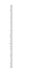 0.0% 10.0% 0.0% 12.5% 36.9% 12.5% 0.0% 0.0% 0.0% 25.0% 0.0% 0.0% 33.3% 0.0% 27.0% 0.0% 0.0% 0.0% 0.0% 25.0% 0.0% 0.0% 11.8% 33.3% 30.0% 37.7% 0.0% 30.0% 0.0% 100.0% 0.0% 50.3% 0.0% 50.0% 0.0% 6.7% 8.3% 25.0% 33.3% 34.5% 0.0% 0.0% 0.0% 37.3% 18.2% 0.0% 50.0% 56.6%