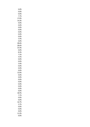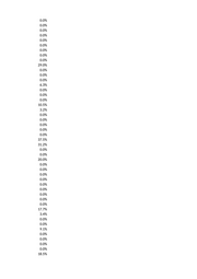 0.0% 0.0% 0.0% 0.0% 0.0% 0.0% 0.0% 0.0% 0.0% 29.0% 0.0% 0.0% 0.0% 6.3% 0.0% 0.0% 0.0% 10.5% 3.2% 0.0% 0.0% 0.0% 0.0% 0.0% 37.5% 31.2% 0.0% 0.0% 20.0% 0.0% 0.0% 0.0% 0.0% 0.0% 0.0% 0.0% 0.0% 0.0% 17.7% 3.4% 0.0% 0.0% 9.1% 0.0% 0.0% 0.0% 0.0% 18.5%