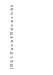 30.8% 23.1% 13.8% 8.3% 0.0% 5.0% 28.2% 0.0% 0.0% 0.0% 0.0% 0.0% 0.0% 0.0% 6.3% 7.1% 0.0% 0.0% 27.8% 0.0% 10.5% 0.0% 7.1% 0.0% 0.0% 6.5% 0.0% 33.3% 0.0% 14.4% 0.0% 0.0% 0.0% 0.0% 0.0% 14.3% 10.0% 0.0% 14.3% 17.3% 0.0% 6.3% 0.0% 0.0% 6.7% 0.0% 0.0% 11.1%