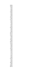 50.0% 14.3% 0.0% 0.0% 0.0% 15.8% 0.0% 0.0% 0.0% 33.3% 0.0% 11.1% 0.0% 0.0% 7.9% 0.0% 0.0% 44.4% 0.0% 0.0% 0.0% 16.7% 34.1% 15.4% 0.0% 6.3% 10.0% 0.0% 30.5% 14.3% 8.3% 0.0% 0.0% 14.9% 0.0% 0.0% 3.2% 2.1% 3.1% 0.0% 0.0% 27.5% 0.0% 0.0% 18.2% 0.0% 50.0% 66.7%