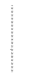 0.0% 0.0% 24.8% 9.1% 0.0% 0.0% 0.0% 23.5% 3.8% 12.5% 2.9% 25.1% 7.8% 20.0% 11.8% 14.3% 6.7% 0.0% 0.0% 16.7% 0.0% 10.0% 31.9% 0.0% 0.0% 2.1% 26.3% 3.0% 25.6% 7.9% 6.0% 14.3% 12.5% 0.0% 38.5% 100.0% 9.4% 0.0% 50.0% 0.0% 21.1% 0.0% 0.0% 0.0% 0.0% 50.0% 6.1% 15.4%